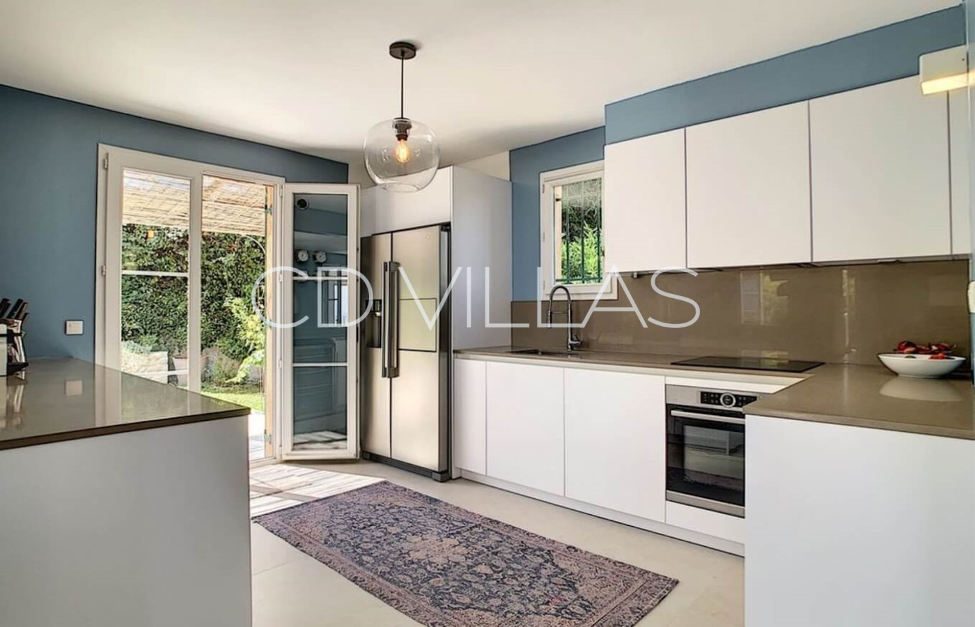 Living / Dining room - Open plan living / dining room with modern and fully equipped kitchen. Large window doors open onto the covered terrace overlooking the pool area and view.
