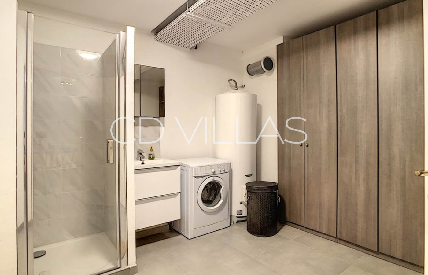 On the ground floor a spacious open plan living / dining room together with the kitchen can be found. The fully equipped modern kitchen offers all modern amenities. From the living areas large doors open onto the terrace overlooking the pool. A large flat screen TV offers a full TV package and Apple TV.