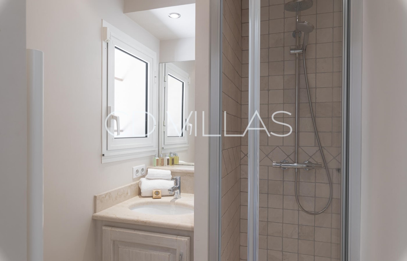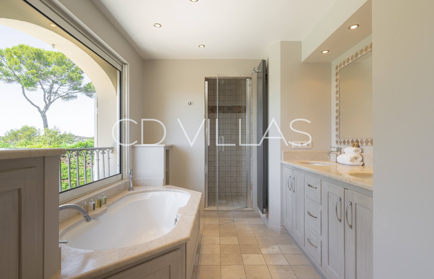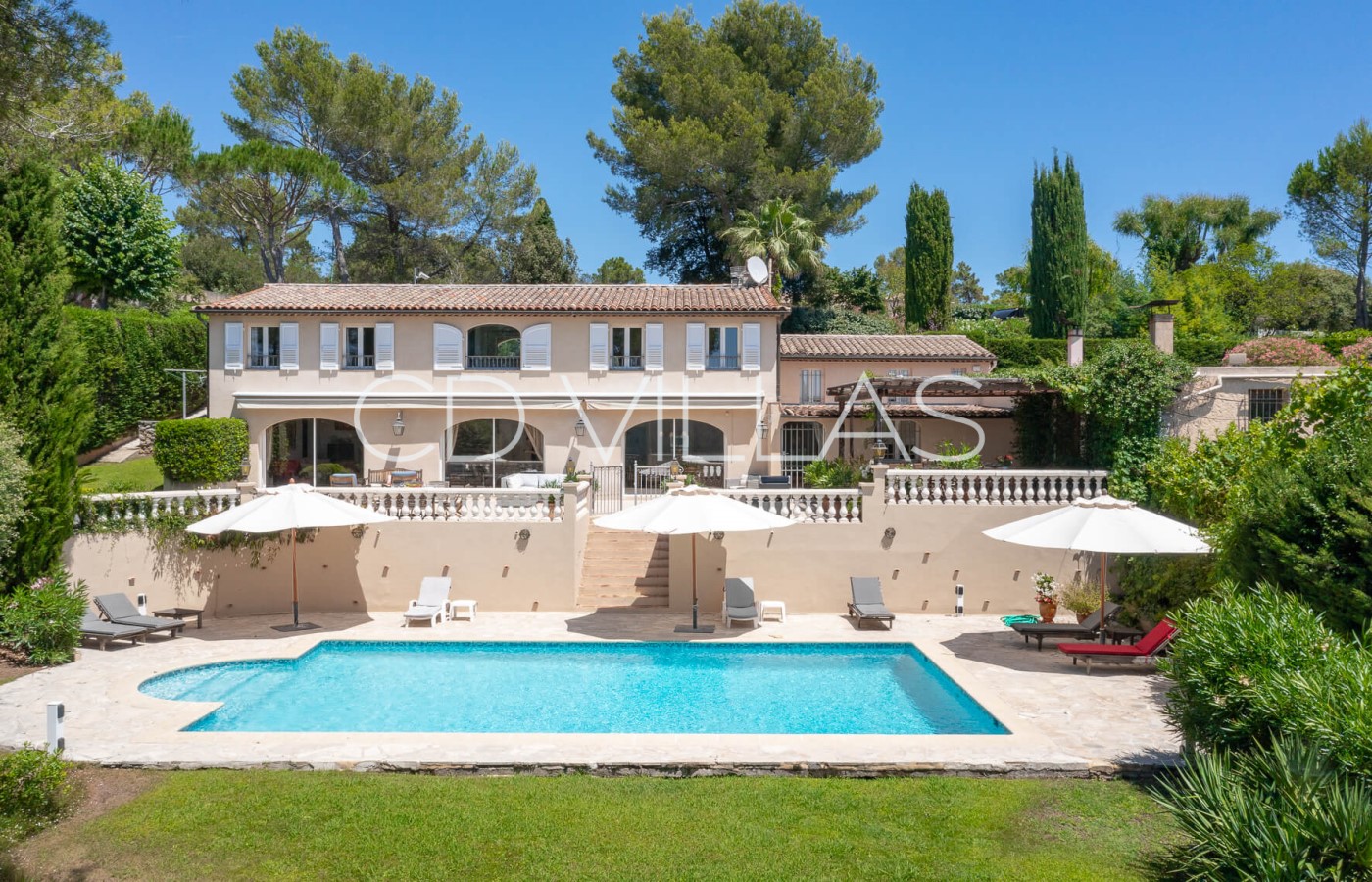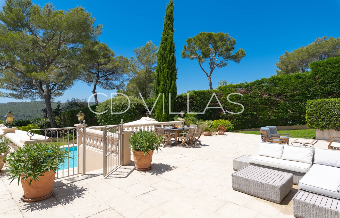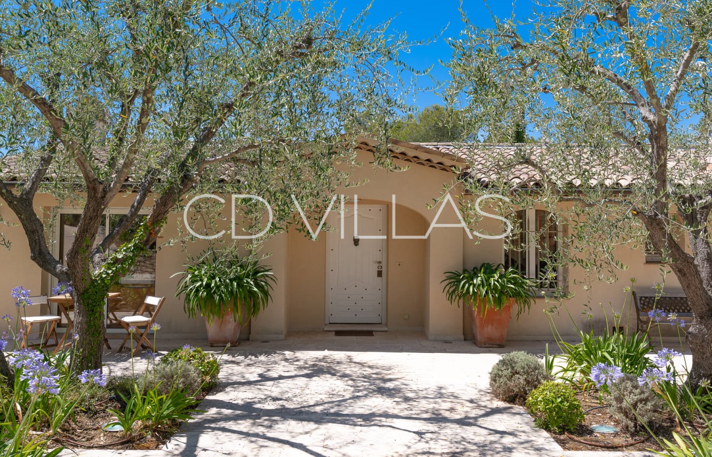The villa offers accomodation for 10 people with 4 bedrooms in the main house and a separate studio, all air conditioned. The outdoor comprises of a spacious elevated terrace with dining and seating area and lovely views over the countryside, a large fenced pool that can be heated, all set in a beautiful Mediterranean garden.