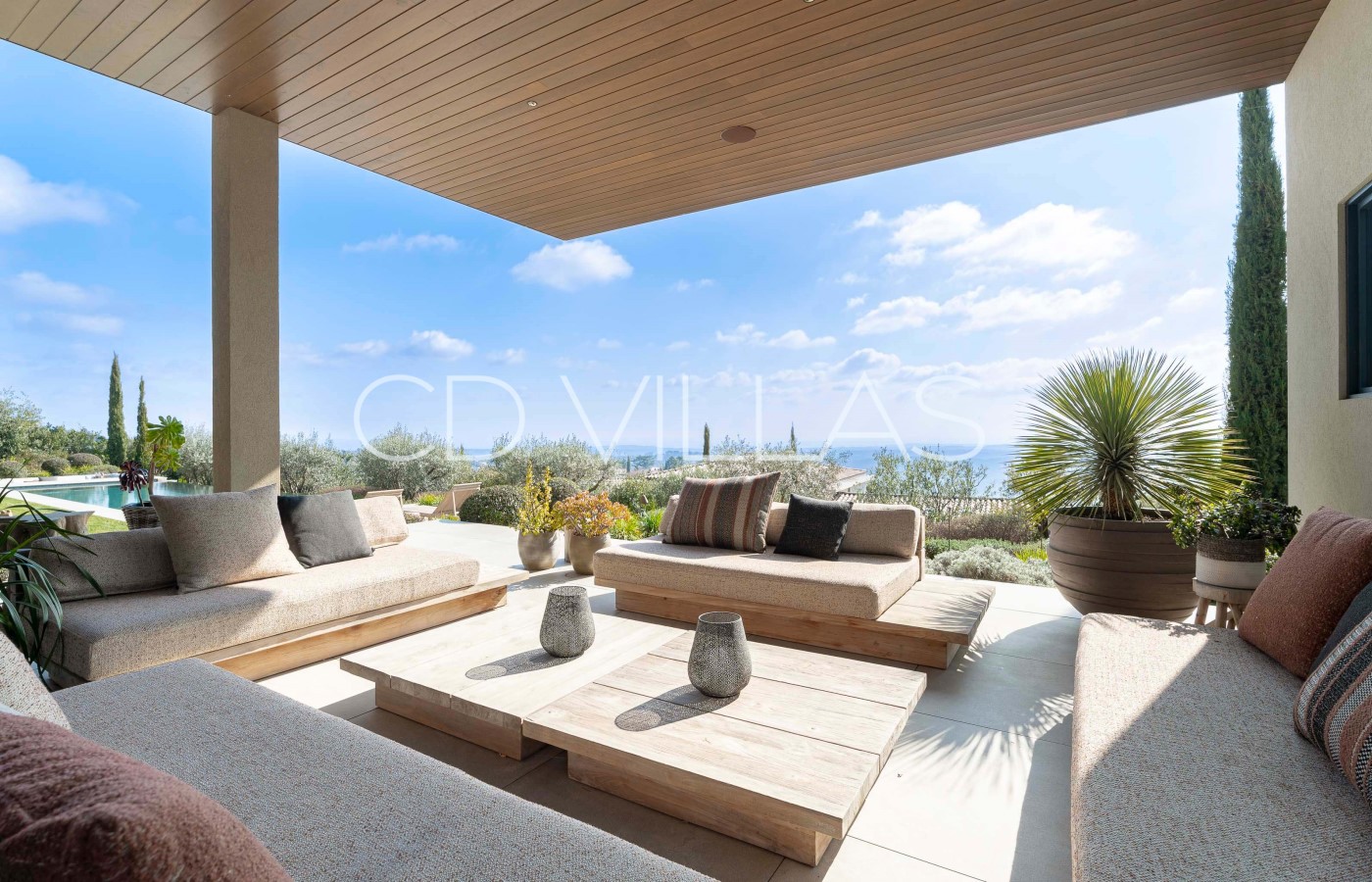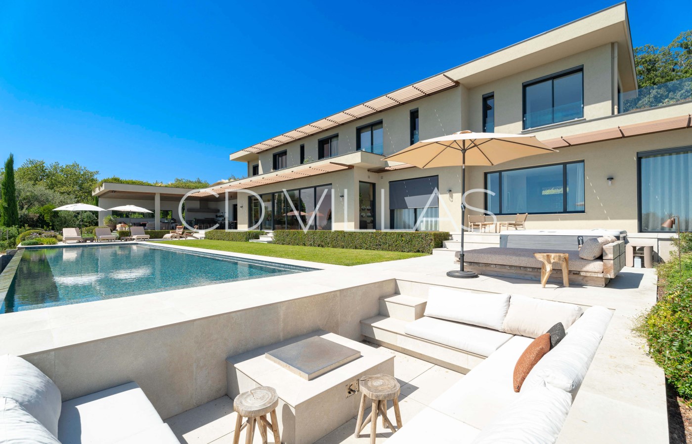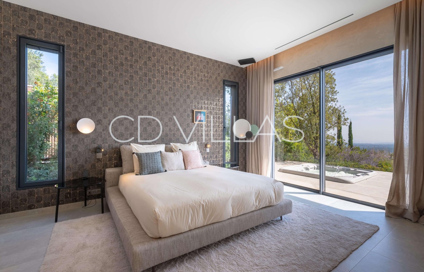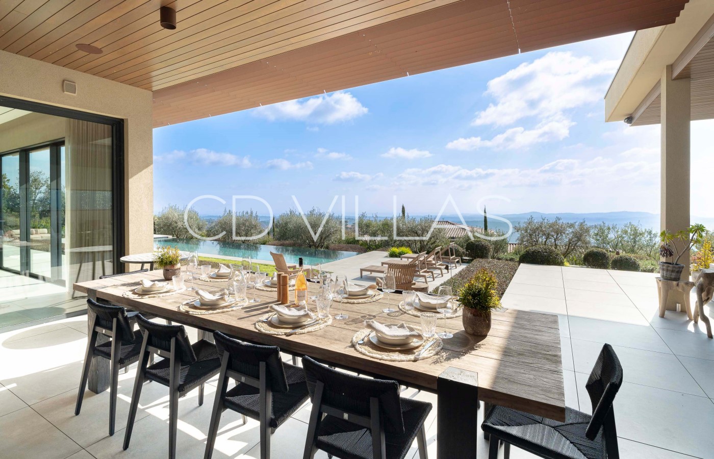 The exceptional outdoor living areas offer a true and luxury South of France holiday experience. There is a large infinity pool completed with a beautiful fire pit, a large covered outdoor dining area with fully equipped kitchen (gaz BBQ / Pizza oven / Plancha / Green Egg BBQ). A Sonos installation is available for the exterior living spaces. Outdoor shower also available.