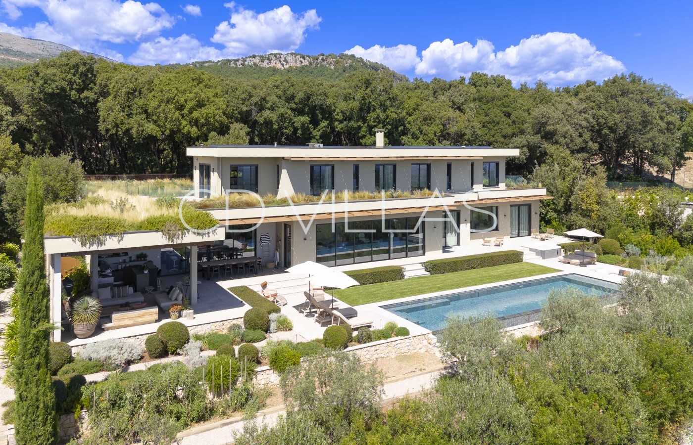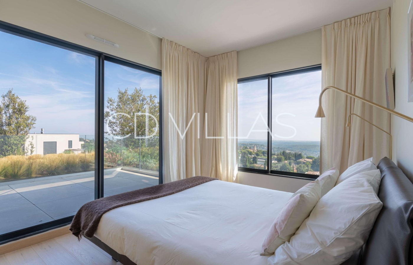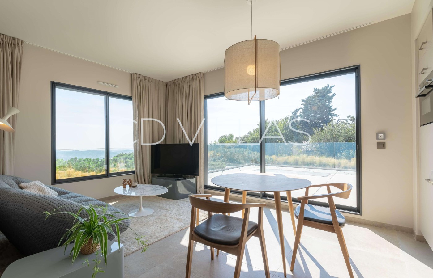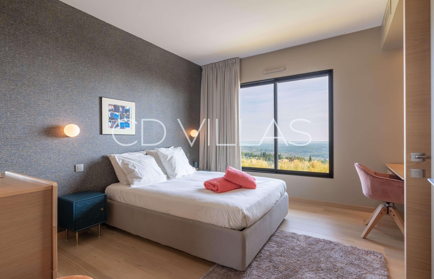 The exceptional outdoor living areas offer a true and luxury South of France holiday experience. There is a large infinity pool completed with a beautiful fire pit, a large covered outdoor dining area with fully equipped kitchen (gaz BBQ / Pizza oven / Plancha / Green Egg BBQ). A Sonos installation is available for the exterior living spaces. Outdoor shower also available.