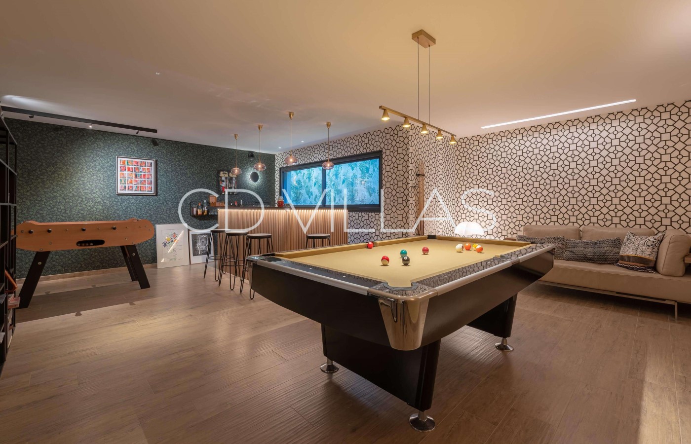 Games room - Billiard table, table soccer, bar area with fridge, dishwasher.
