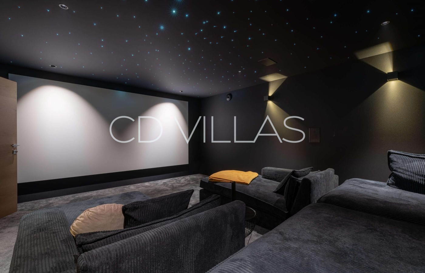On the lower ground of the villa guests will find a relaxing area with a steam room, a smart bike, yoga mats and a yoga ball, weights, a games area and a high tech cinema room.