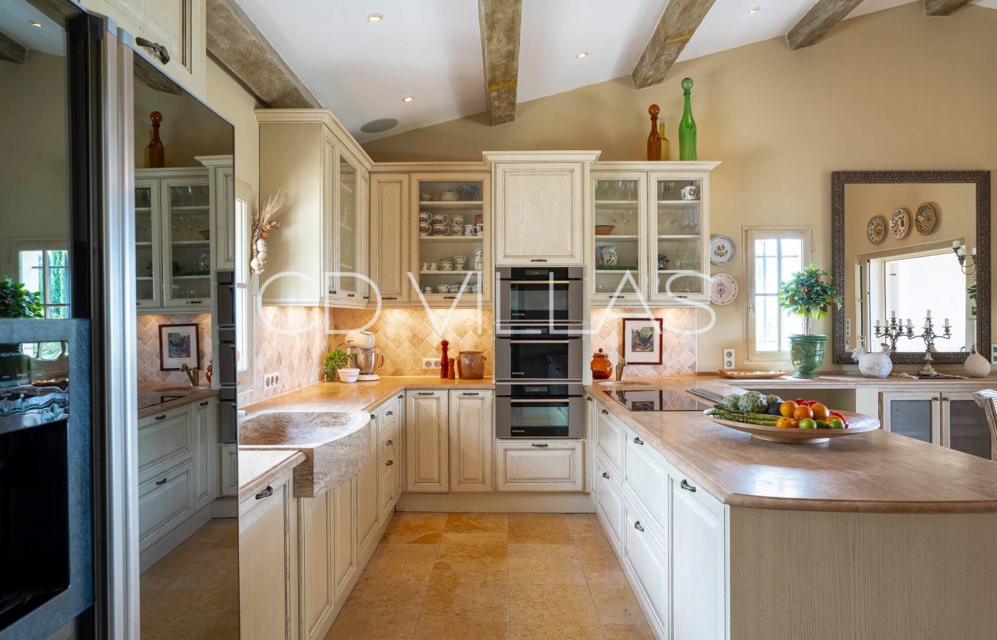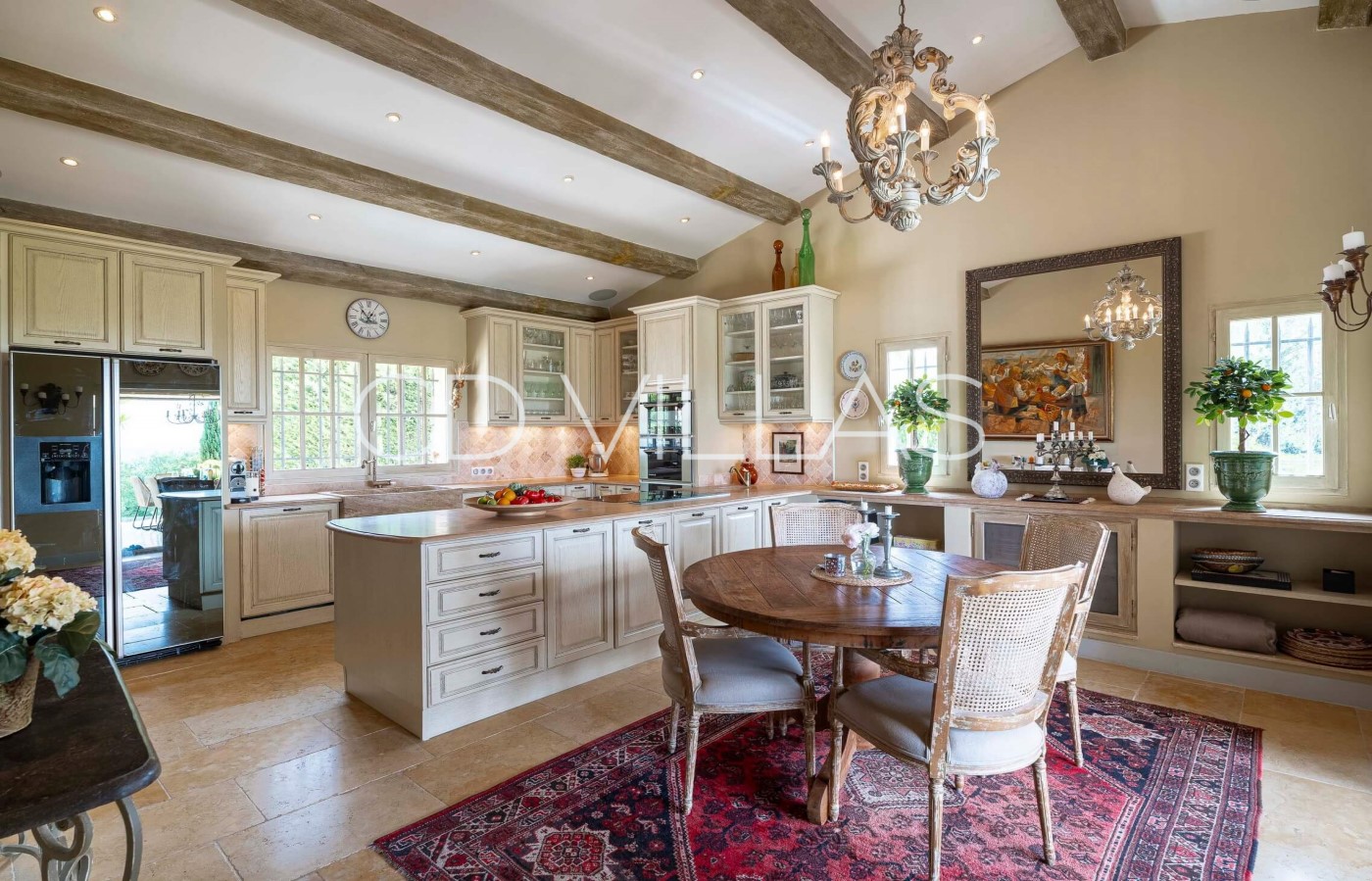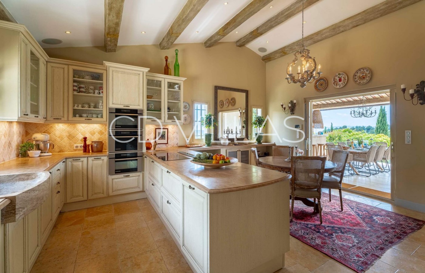 Kitchen - Fully equipped kitchen with kitchen island and breakfast area, opening onto the spacious covered outside dining terrace.