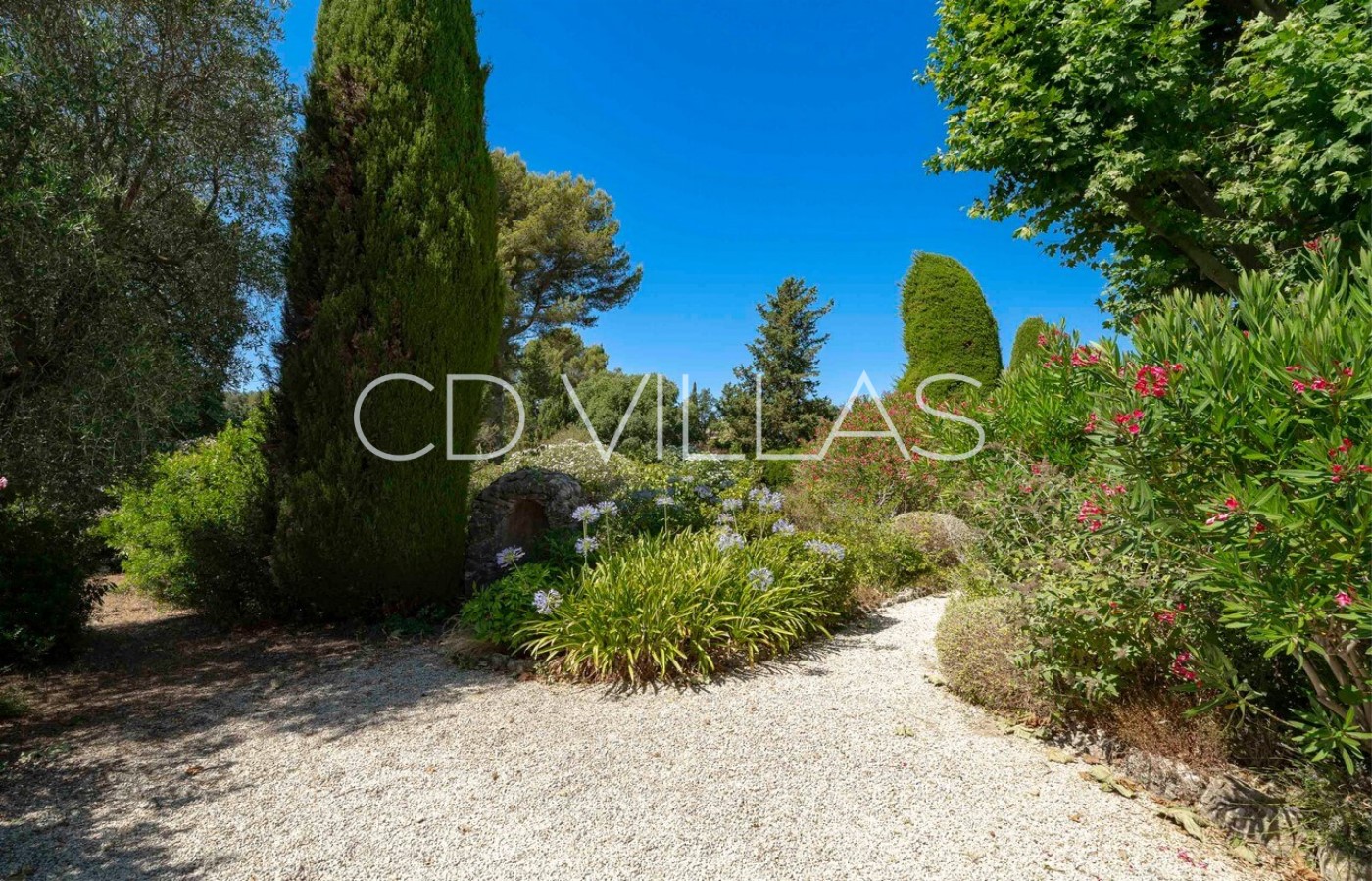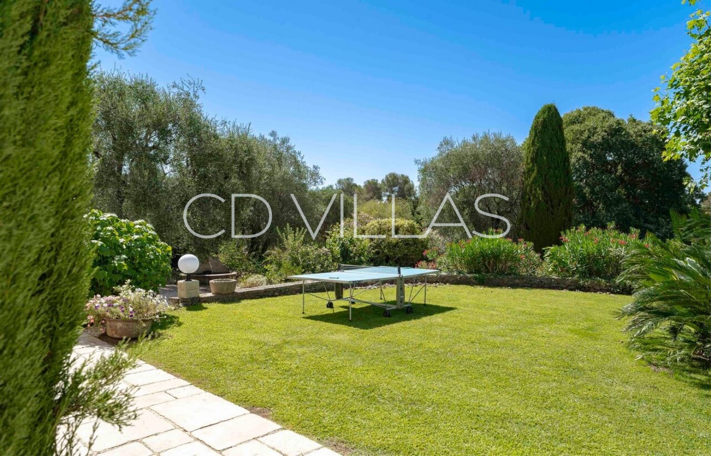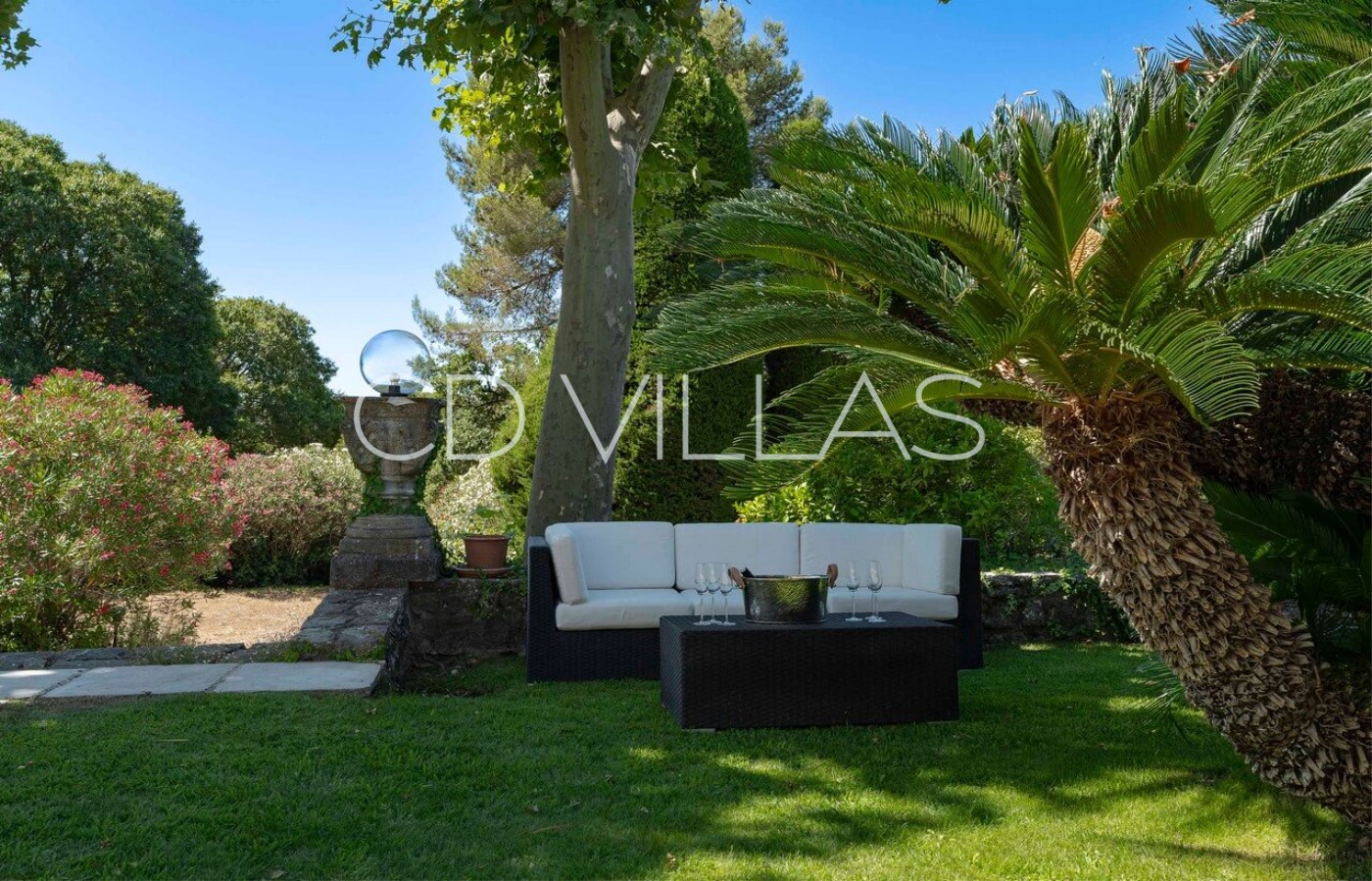 Once used to cultivate flowers for the 'parfumeries' of Grasse, the mature gardens extend in wide terraces and open lawns dotted with fig and olive trees, providing a peaceful environment for relaxing with family and friends.