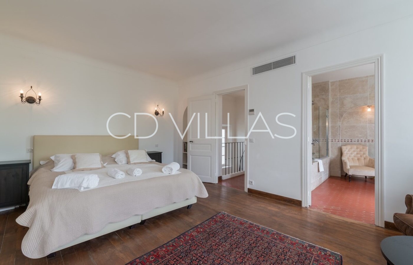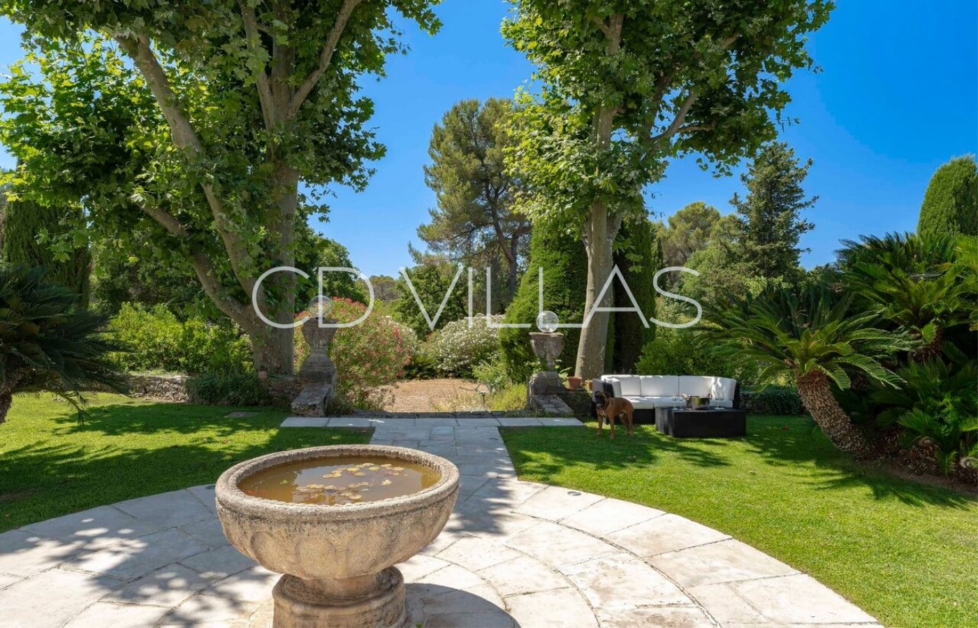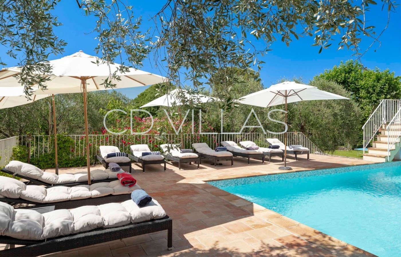 Once used to cultivate flowers for the 'parfumeries' of Grasse, the mature gardens extend in wide terraces and open lawns dotted with fig and olive trees, providing a peaceful environment for relaxing with family and friends.
