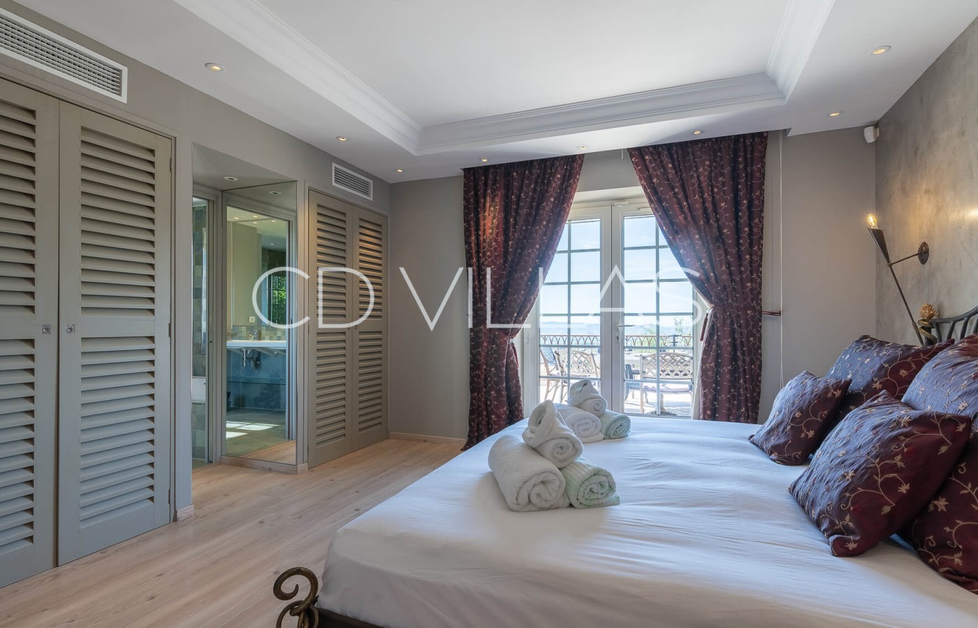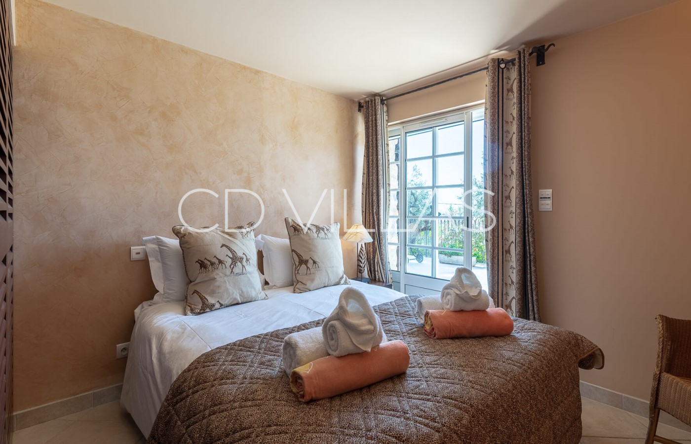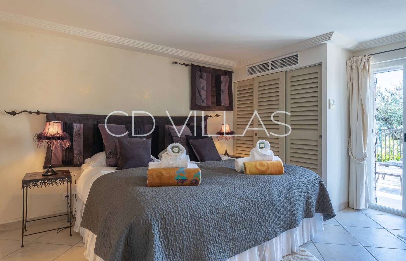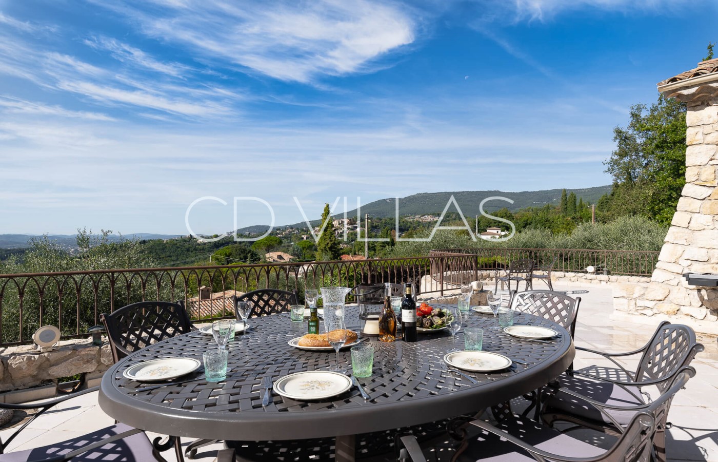 Figue Olive is a beautiful stone-built family home set in a lovely terraced garden with lawns, in the hills above Châteauneuf, with panoramic views of the surrounding Côte d'Azur hills and the bay of Mandelieu La Napoule. The property has 5 bedrooms and 5 bathrooms, reception room, open-plan dining room and designer kitchen with stone floors and air-conditioning throughout. All rooms were completely refurbished in 2007 with a new kitchen and all new bathrooms. There's high-speed internet and a games room with Bose sound system and large (42 inch) plasma TV (french channels only).