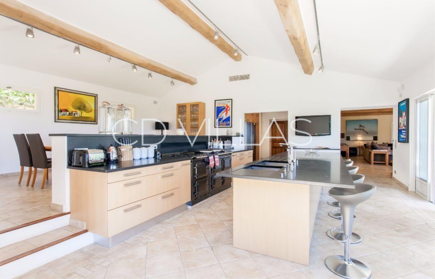 Finished to an exceptional standard, the property features air-conditioning throughout all the bedrooms. The large, heated pool comes with an electronic hard cover for added safety and adjacent to the pool is a spacious covered living area complete with a bar, BBQ and outdoor kitchen-perfect for embracing the quintessential South of France lifestyle. Outdoor dining accommodates up to 10 guests, while the elegant indoor dining room can host larger parties of up to 16.