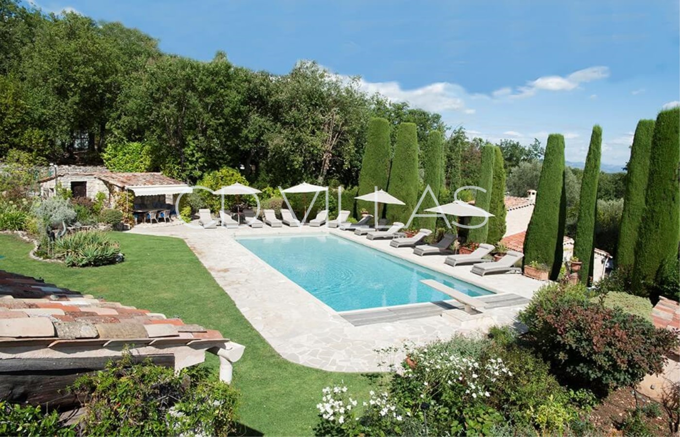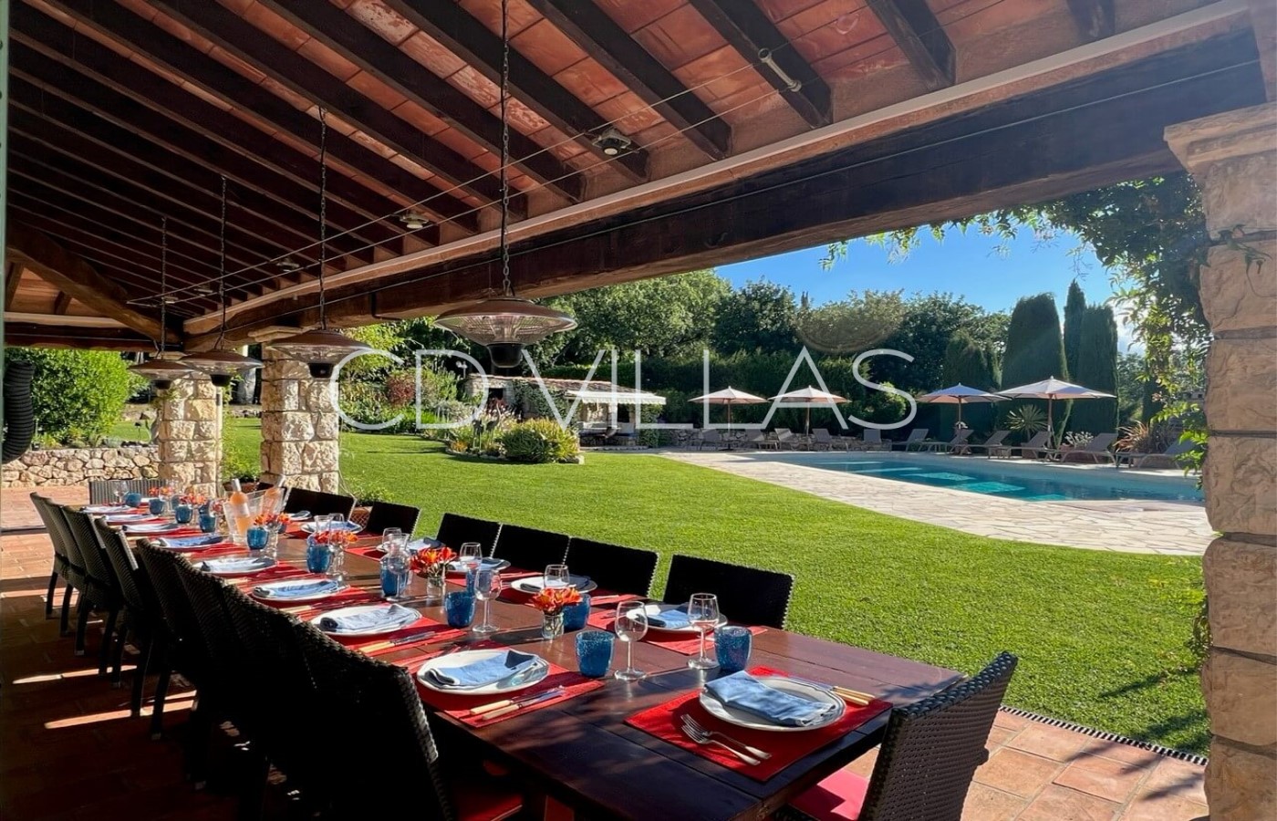 The 14x6m swimming pool has an electric pool cover for safety. Filtration is via a salt system instead of chlorine. Heating is available as an additional cost. The pool hut has a covered terrace with a dining table which comfortably sits 10 people. There is also a small shower-room with a loo.