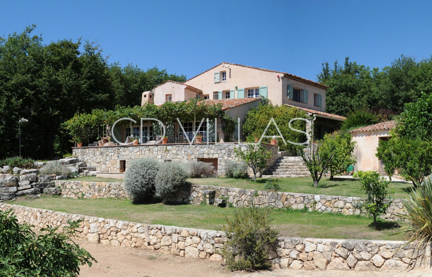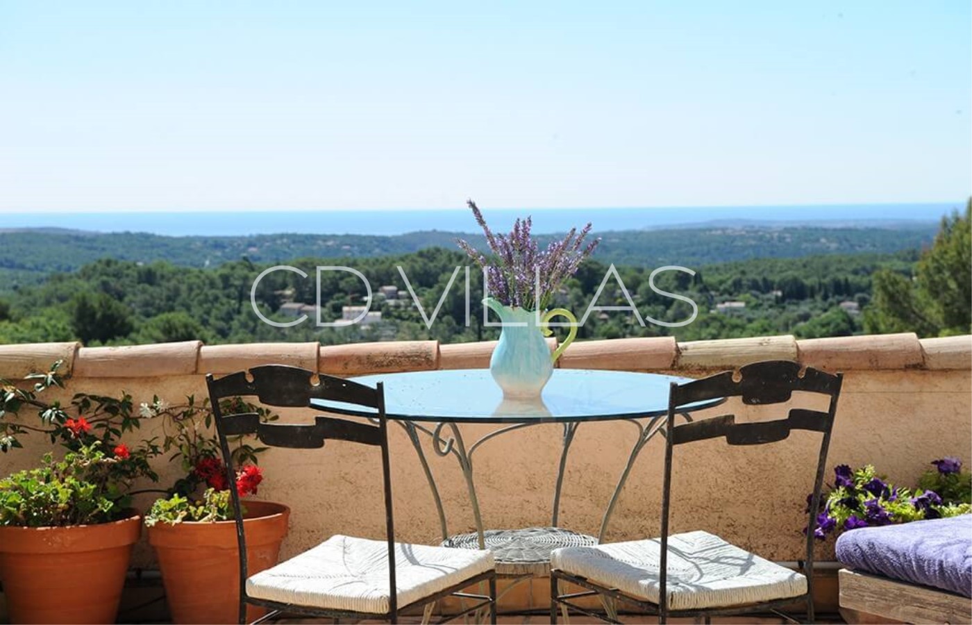 The house is set on a hill at 400m above sea level in a quiet and peaceful area with fabulous views along 60kms of coastline. The open-plan design of the house allows the gentle breeze to flow throughout the house, while the covered terraces shelter guests from the midday sun.