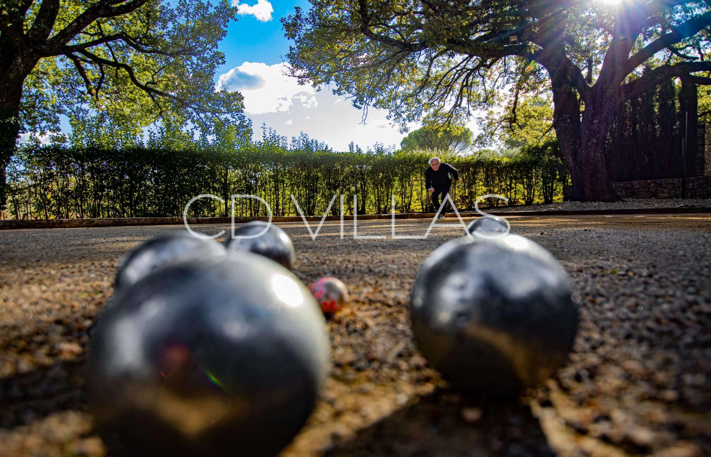 The bastide is set in 11 hectares of Provencal countryside offering many areas to rest, relax and play: truffle oak fields, olive grove, orchard, vegetable plot, summer lounge on the terrace, heated pool with large pool house, tennis court and helipad.
