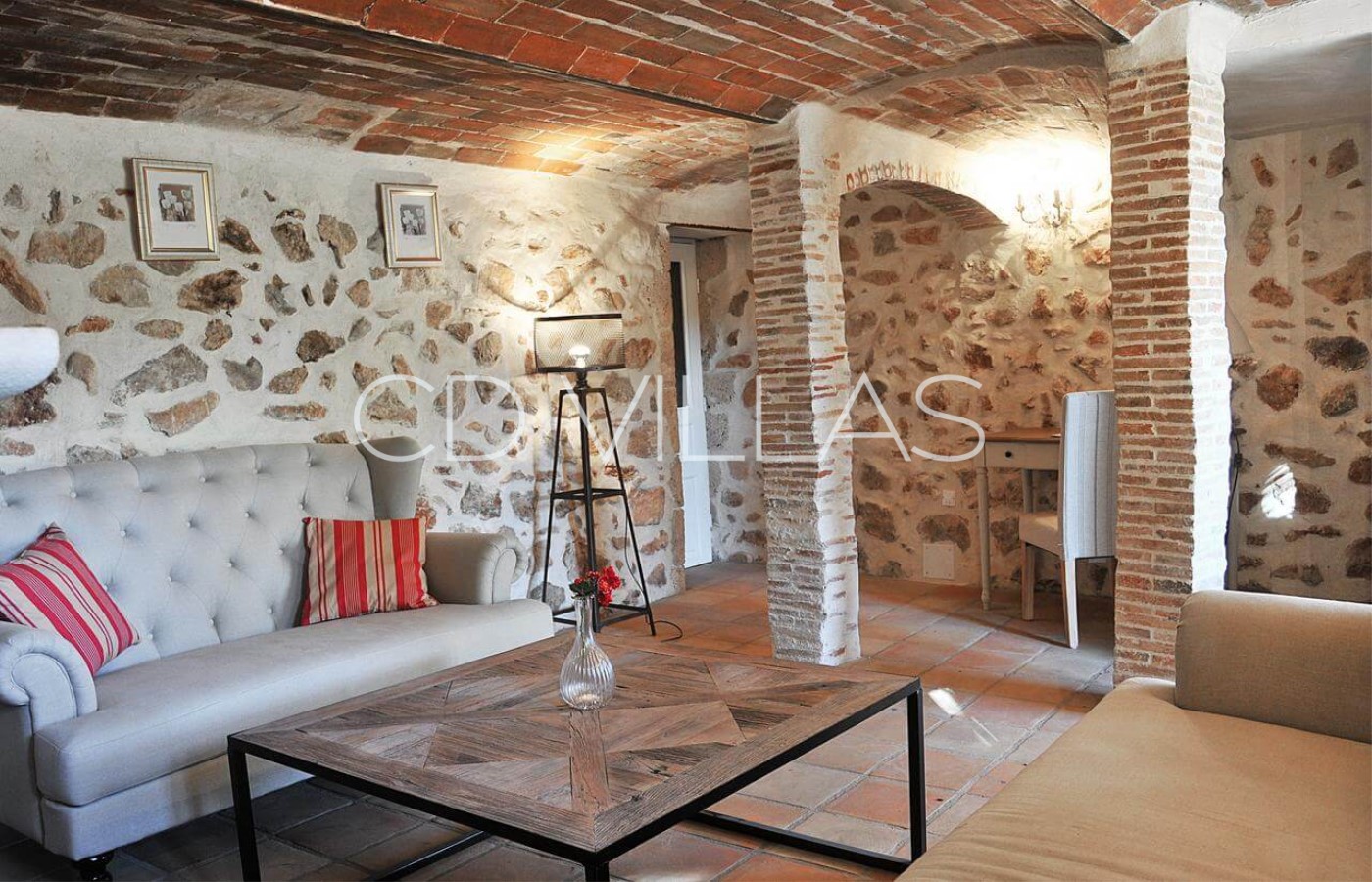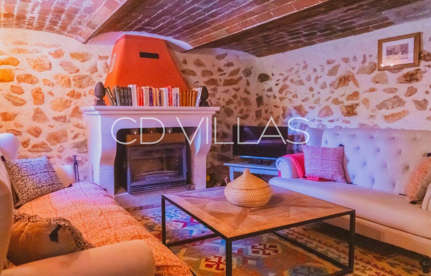 The stone building houses, on the ground floor, a well equipped kitchen, dining room and cozy living room with two comfortable sofas and a fireplace, and a double room with ensuite bathroom with direct access to the terrace and garden.