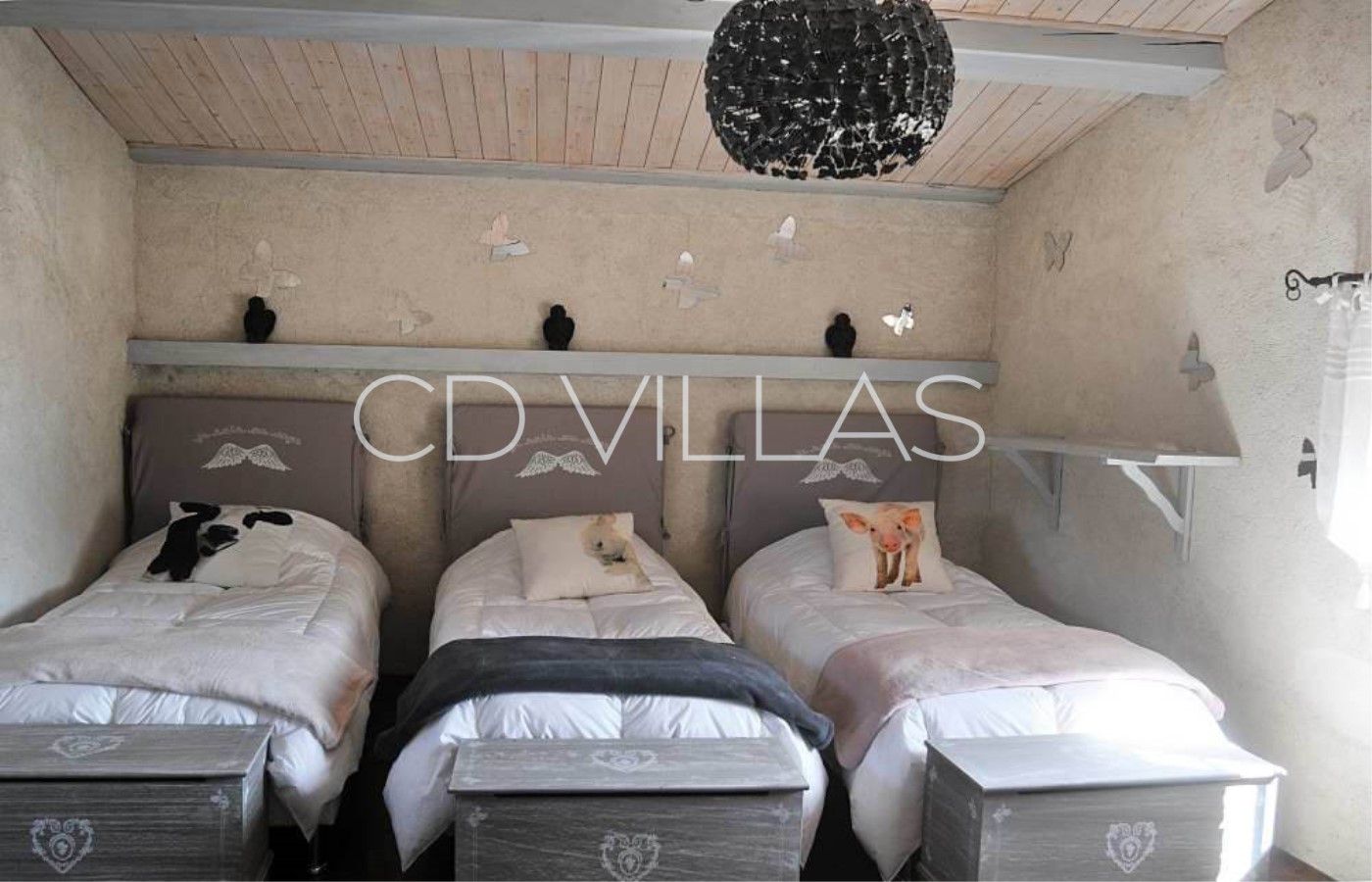 The other 3 bedrooms are located on the first floor: 2 double rooms and a kids' room with 4 single beds and children will love its attic access. There is one bathroom shared by these bedrooms.