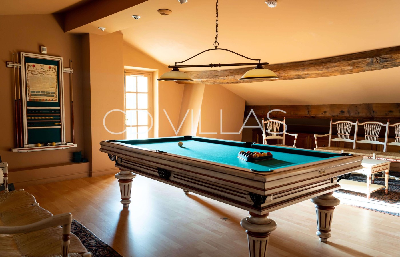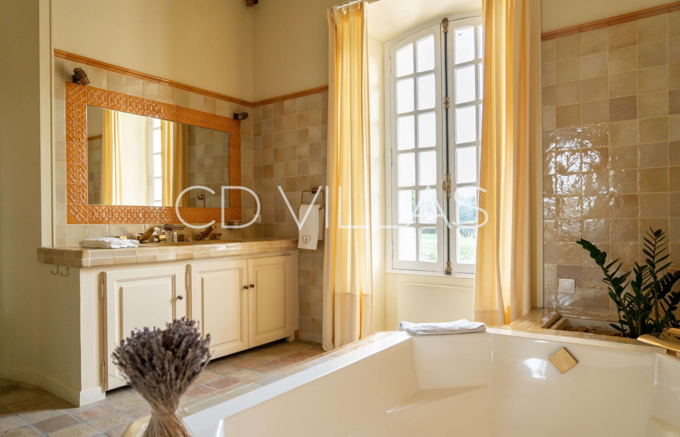 Enjoy a true taste of Provence as you relax on the sun baked terraces, surrounded by vineyards and experience the ambience of an authentic French chateau. The stunning chateau is steeped in history and is the ideal choice for those seeking a private villa with all the services of a hotel. The interiors are luxuriously furnished and include a piano for music enthusiasts, a library that offers a quiet and calm retreat and two large living rooms each with a fireplace that provide elegant gathering spaces. There is also a a fully equipped kitchen, a gym, a sauna, and a billiards room. Outdoors there is a helipad, an open barbecue pit, a spacious pool terrace with chaise longues and umbrellas surrounding a large heated pool, a tennis court, a petanque square and much more.