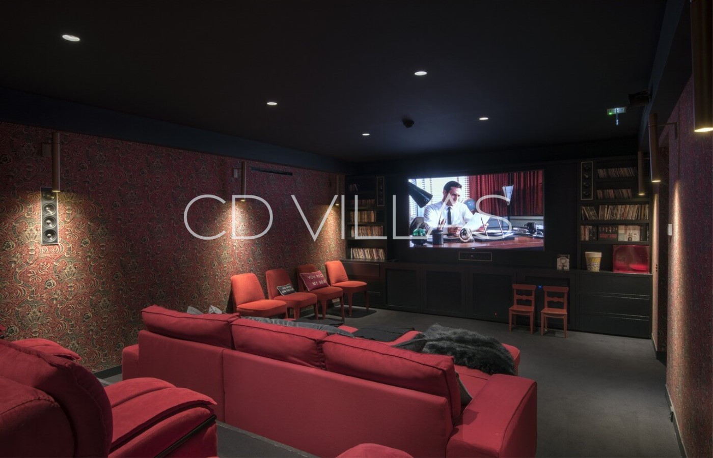 Downstairs, houses a cinema room and there is a secret entrance to the hotel spa next door, for guests looking for privacy.