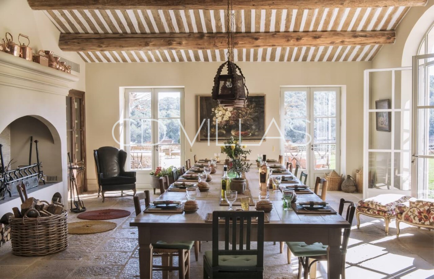 The heart of the house is the large semi-professional yet traditional kitchen with all the equipment one can desire, a large solid wood dining table next to a large fire place.  There is also a kitchen for the staff