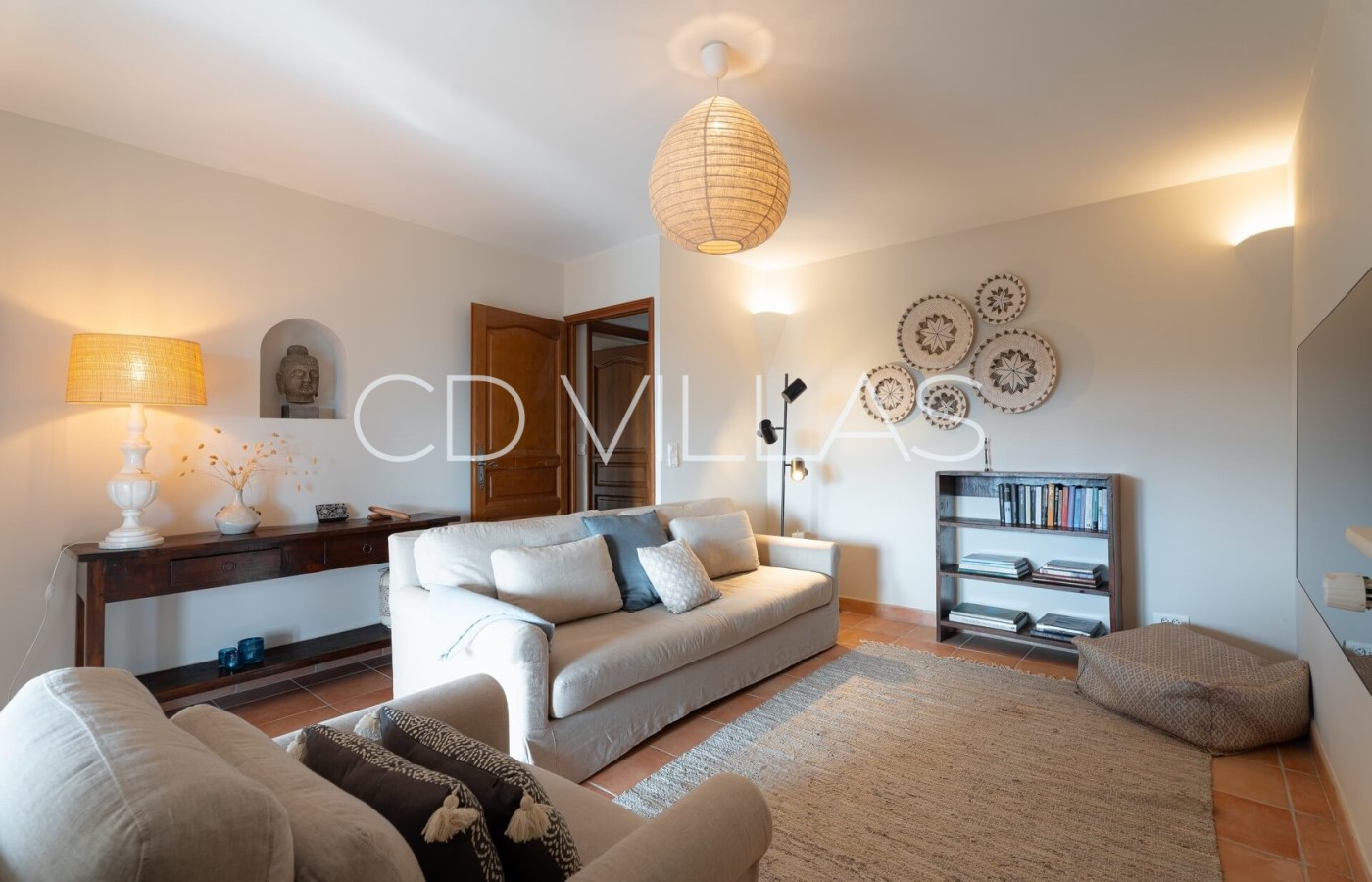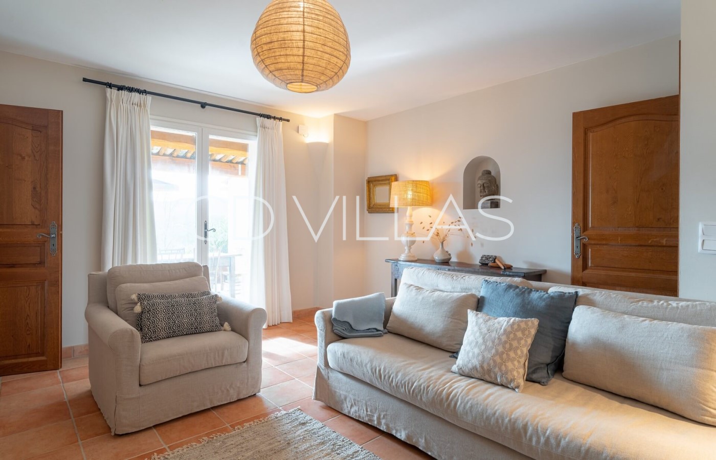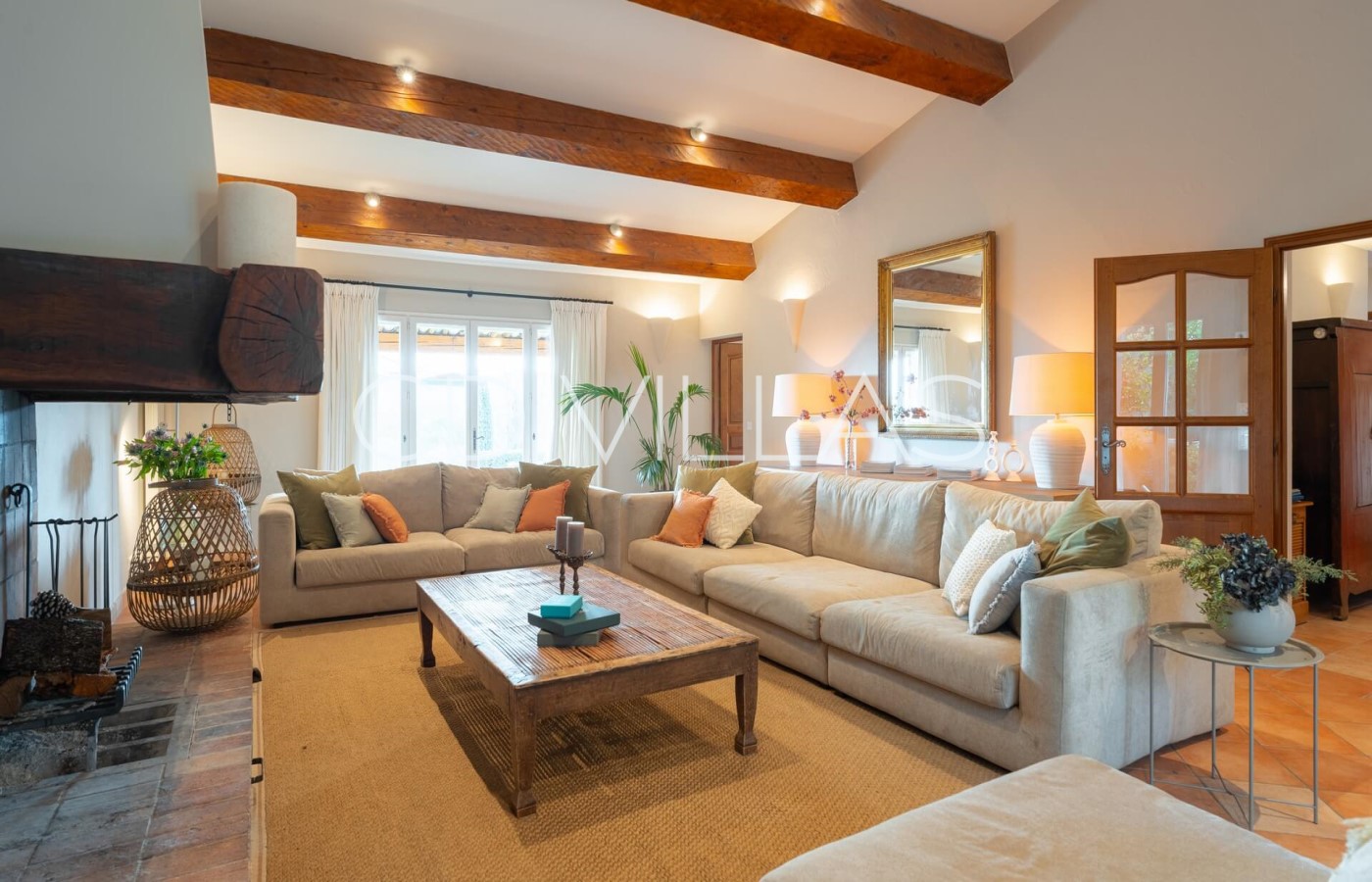 The house has two spacious living rooms, one with a TV connected to international channels and the other with a beautiful fireplace connected to the large and cosy covered veranda equipped with sofas and lounges.