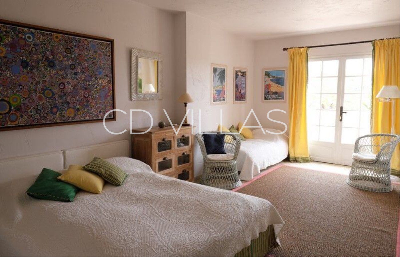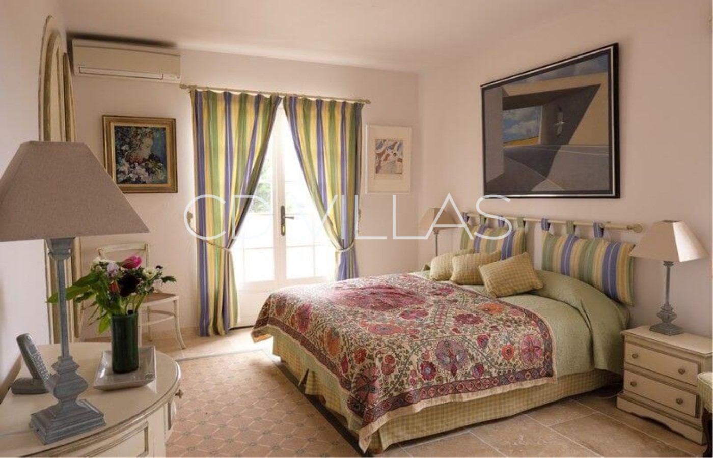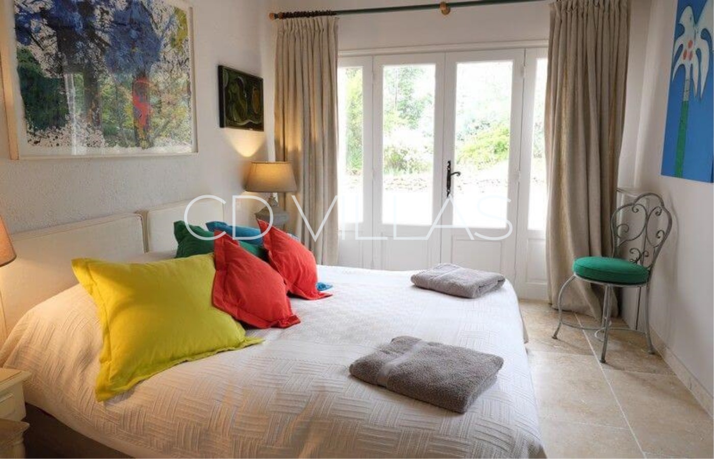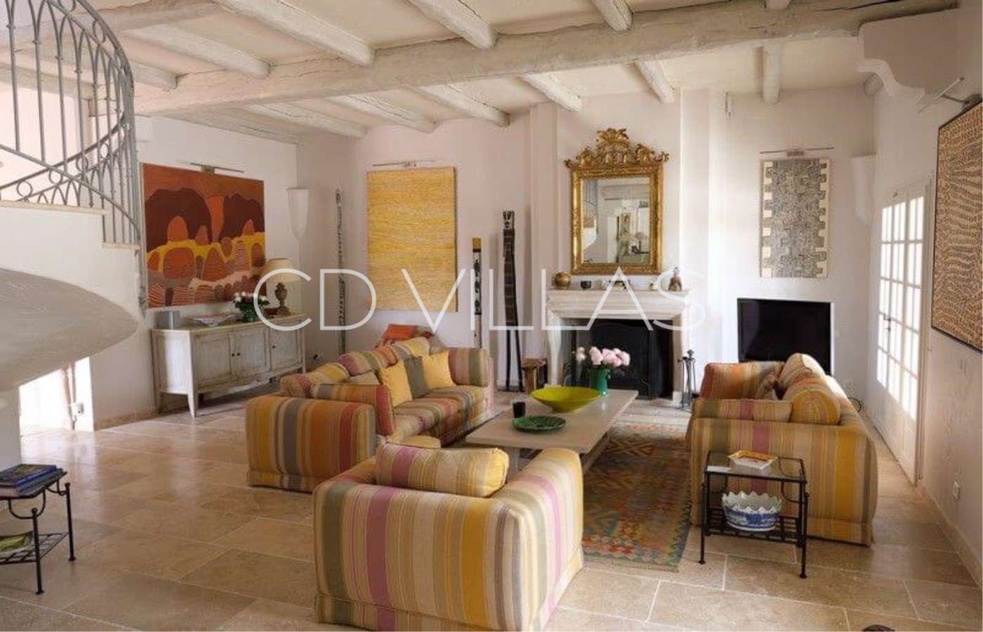 There is a spacious high-beamed living room with an open fireplace, a dining room that seats 8 guests, a study, laundry room with two washing machines and a well-equipped spacious kitchen.The kitchen has a breakfast table for 6 guests. The sitting room, dining room and kitchen open onto the outdoor covered dining area, and then onto the terrace, garden and pool.