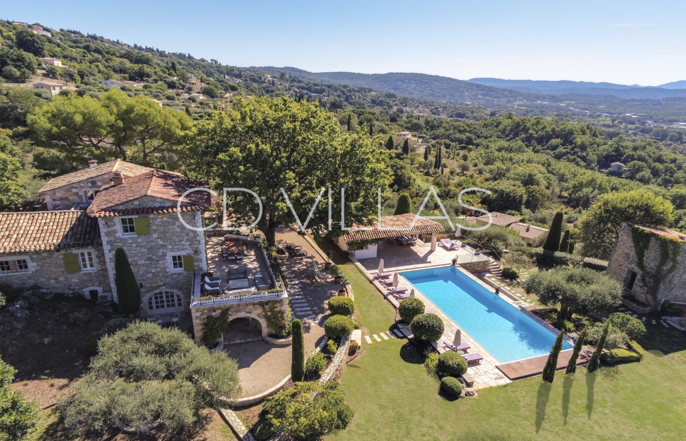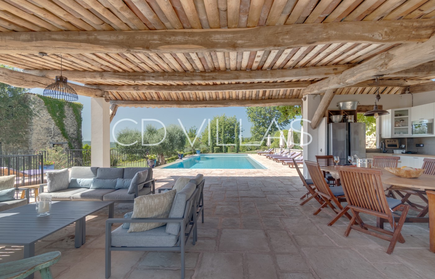 Discover the splendid heated saltwater infinity pool with sun loungers and parasols with 360 degree views of the hilltop villages of Montauroux and Callian; the valley and distant hills. After the pool, you will find a boule court. The SONOS media system delivers music from your own device to all communal areas. Hi speed fibre wifi is available throughout the house and grounds. Apple TV access and SkyTV channels are available on internet enabled TVs.