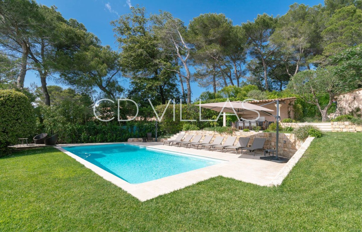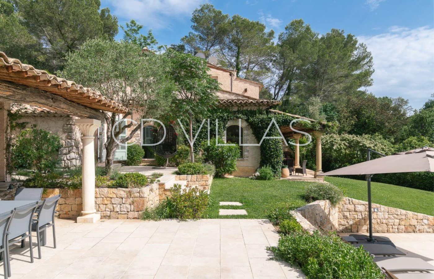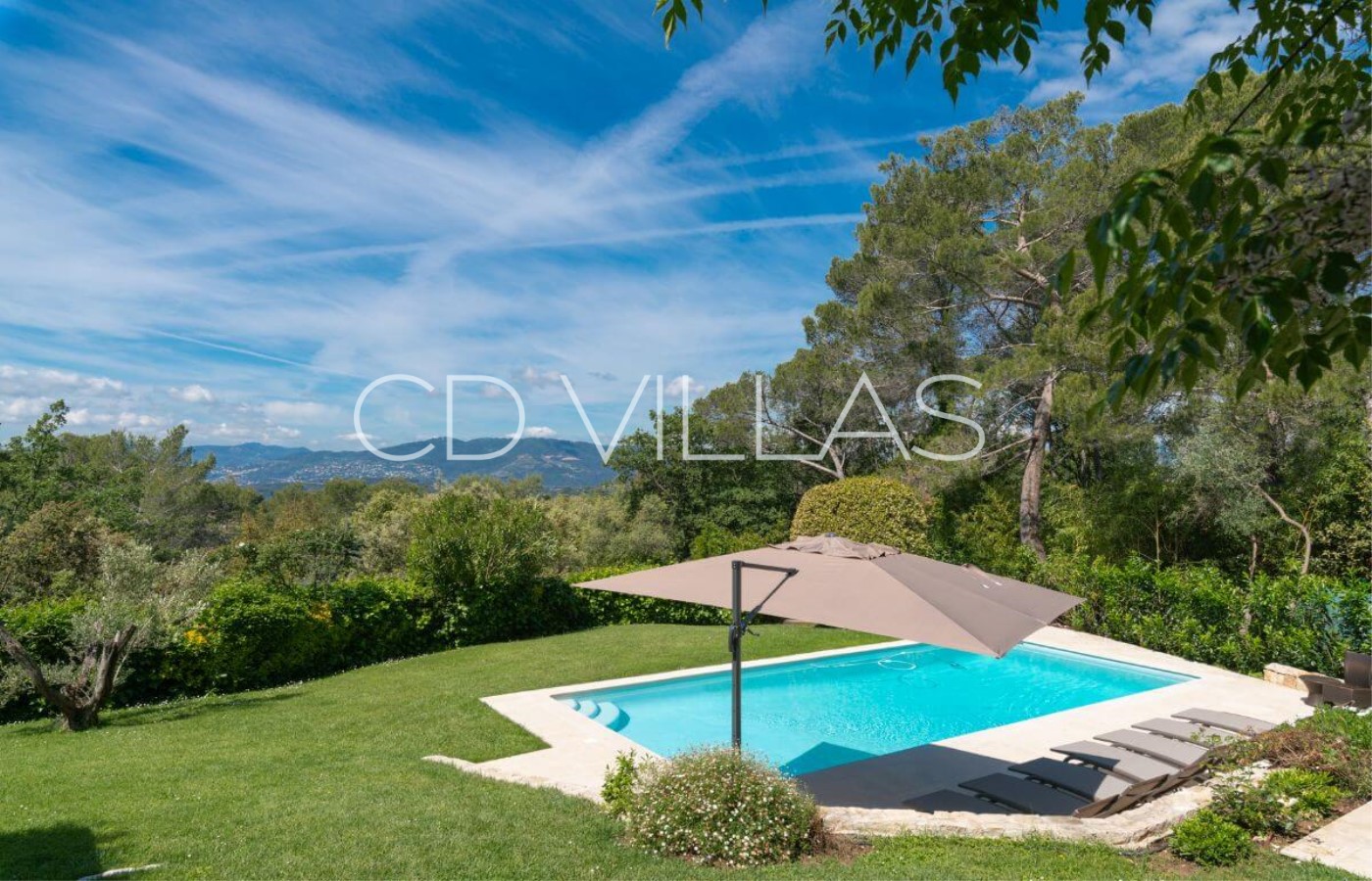 a peaceful residential area 10 minutes from Mougins and Cannes. The