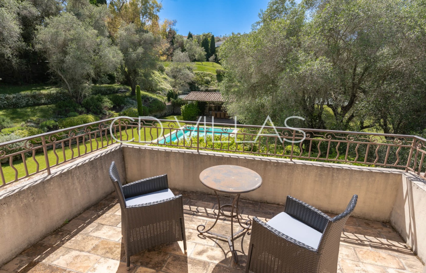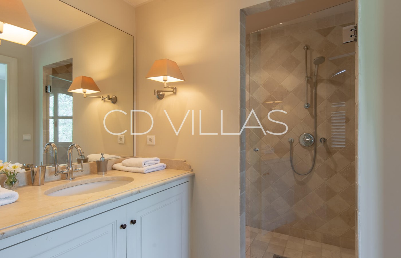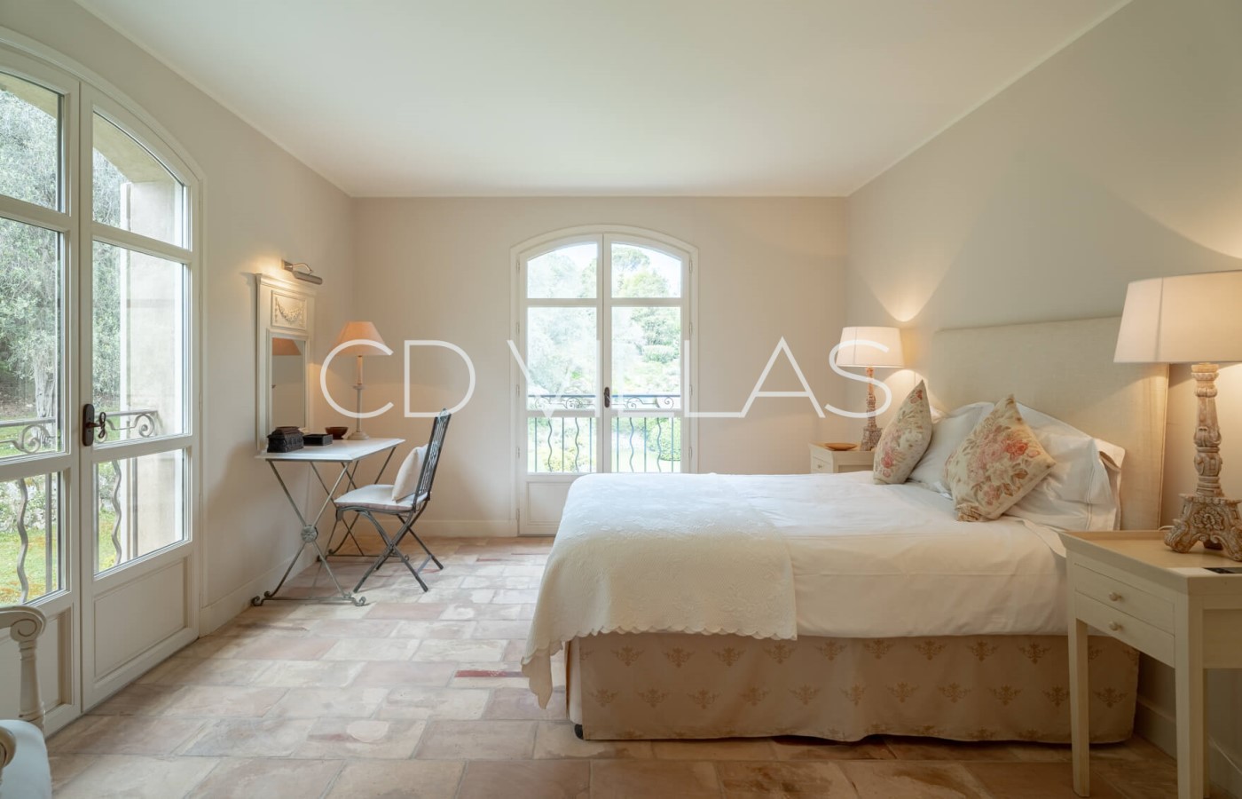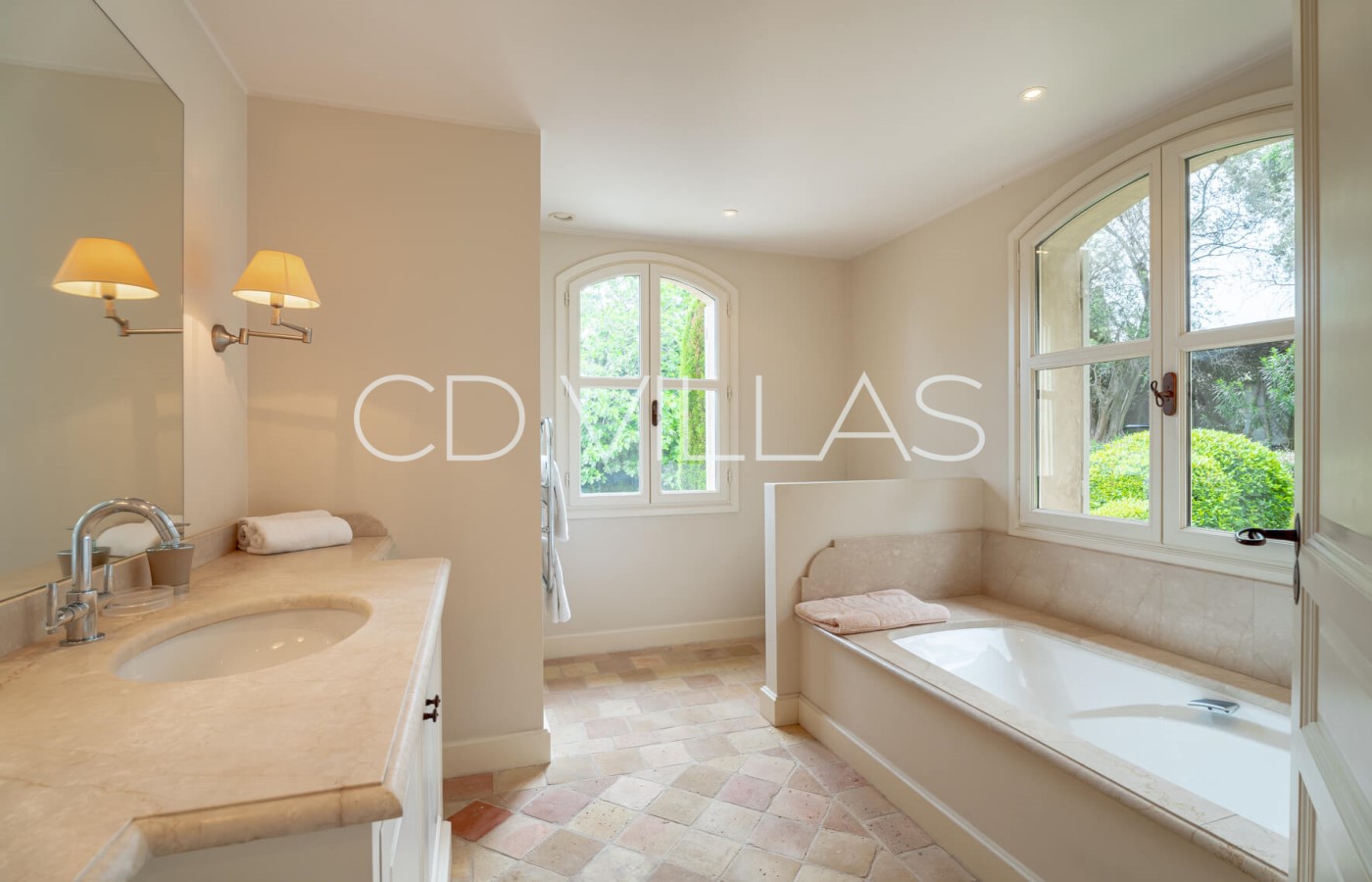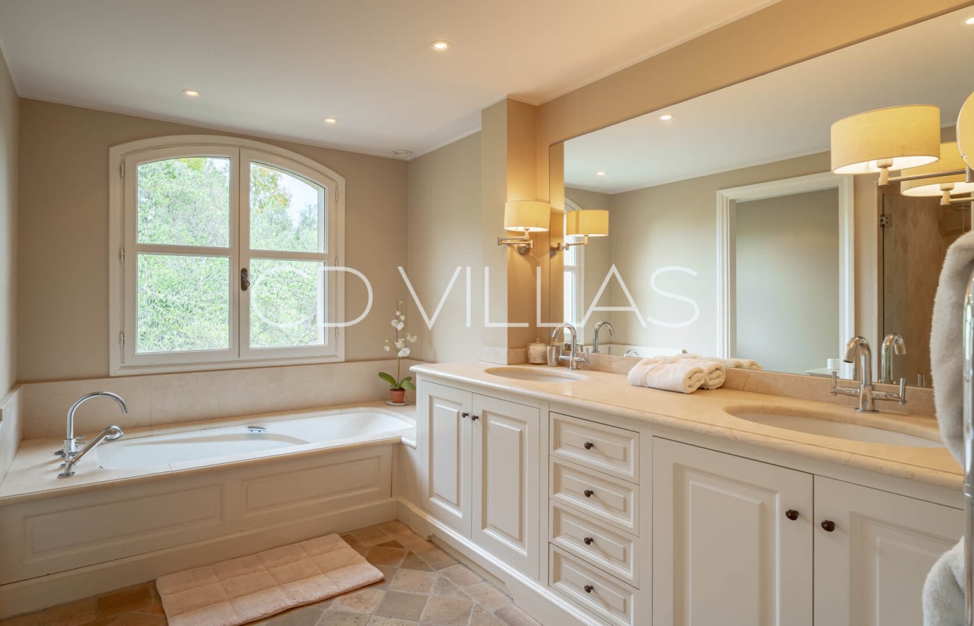 Bedroom 2 - master bedroom with lounge, dressing areas, double bed (160), A/C, private terrace with views on the pool and en suite bathroom with bath, shower enclosure, 2 sinks and WC