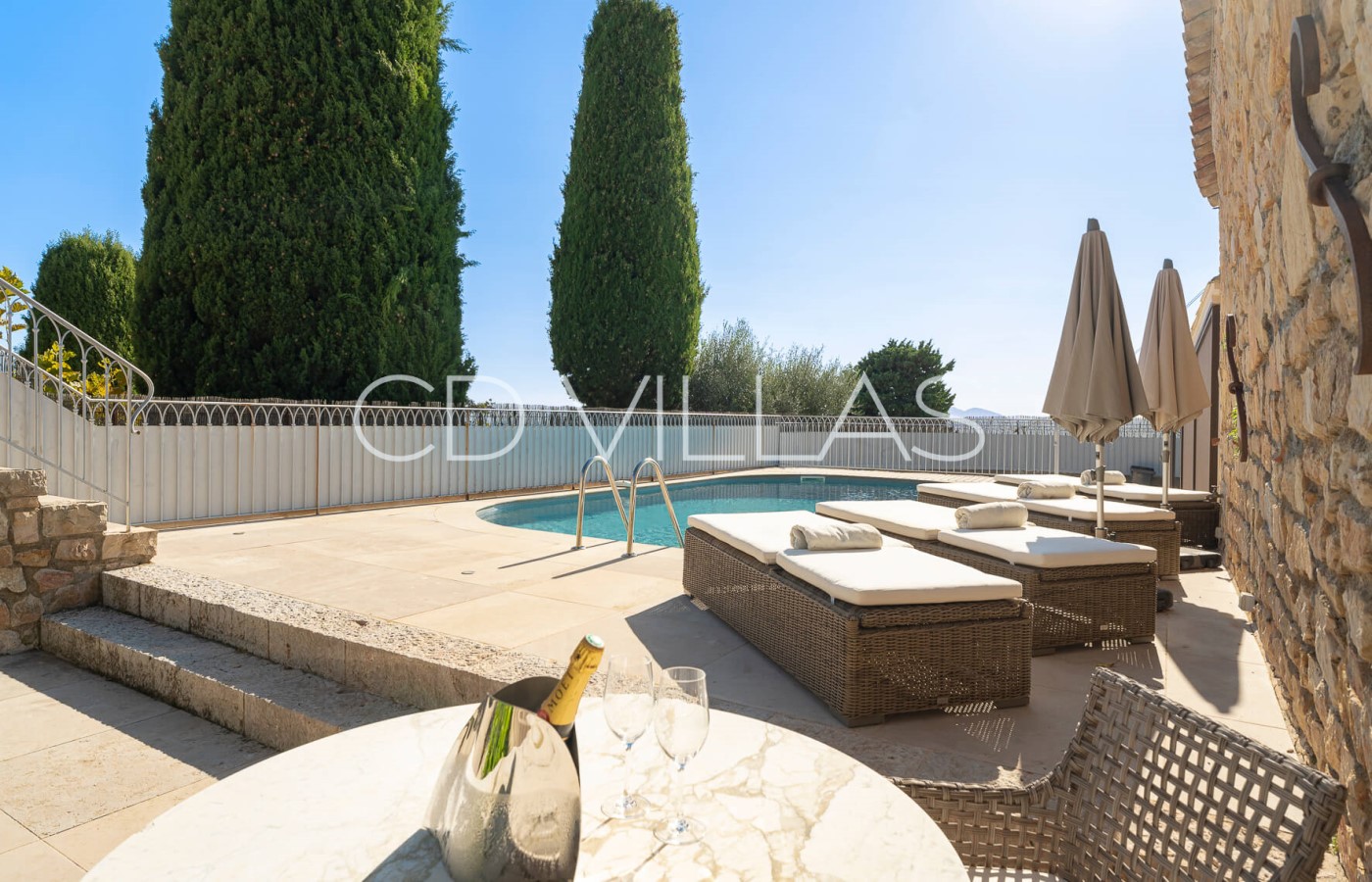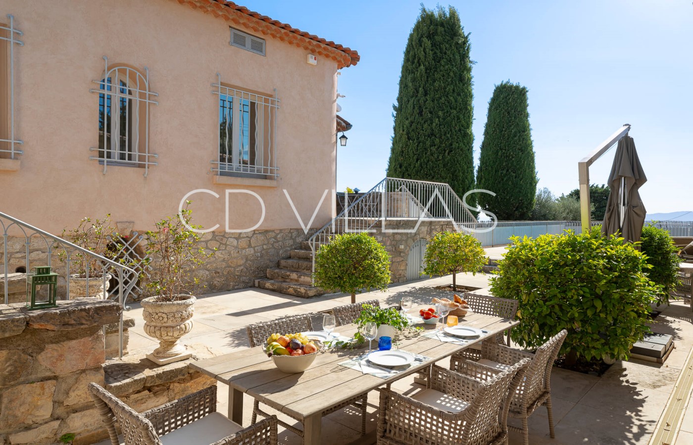 The property offers comfortable accommodation for up to 4 adults and 2 children and is laid out over 1 floor. There is a large living and dining room boasting views to the sea and the Lerins islands. A fully equipped kitchen with double fridge and all modern amenities is available and lead onto the outside. Stairs take you to the pool and outdoor terraces. The exteriors offer fully privatized and well appointed living spaces with several sunloungers, outdoor dining and Weber gaz barbecue.