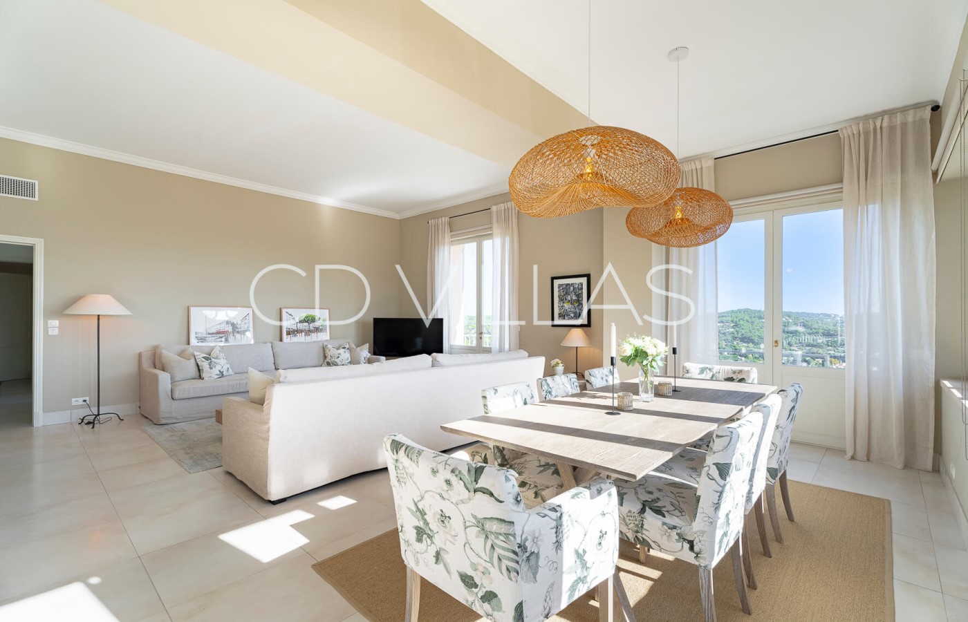 Living / Dining room - Spacious and bright living room with large smart TV. A beautiful large dining table that can comfortably accommodate 6 to 8 guests.