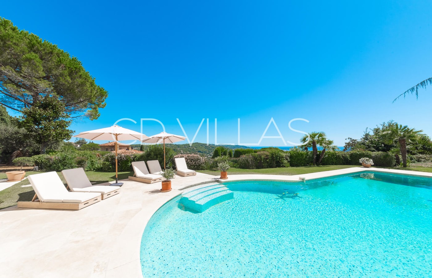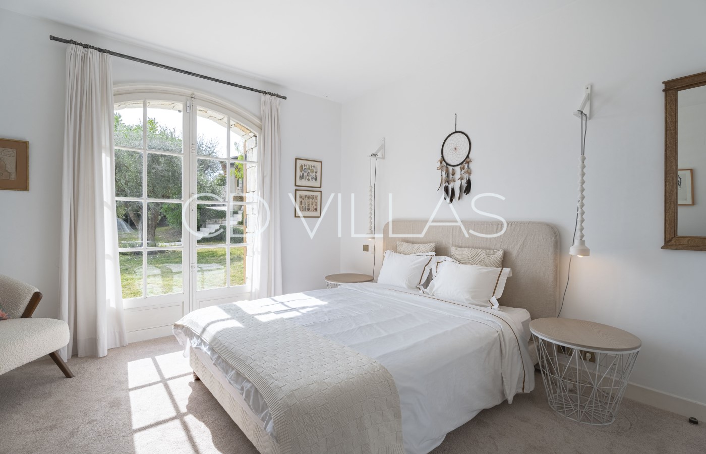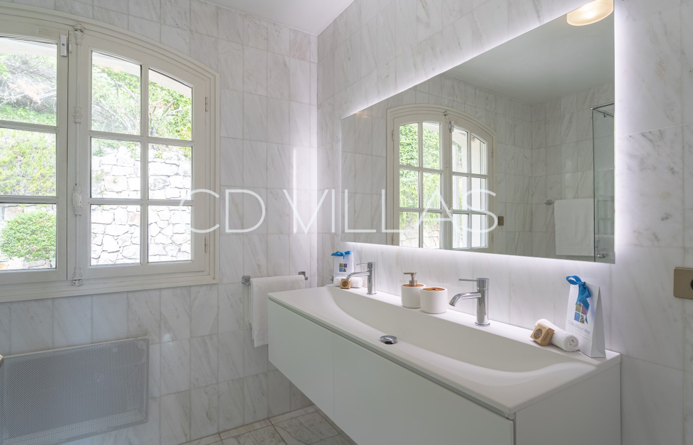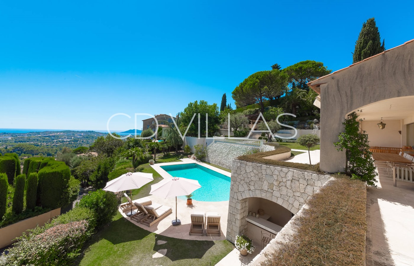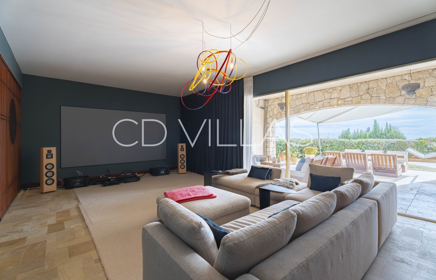 The vast living room measures 100m2 and leads effortlessly onto a large outdoor terrace overlooking the mediterranean sea and the city of Cannes. Guests will enjoy a comfortable seating area and outdoor dining facilities including a 3.5 metre table that can seat up to 12 people with ease. Sun blinds provide shade if necessary. The property offers a large fully equipped kitchen complete with TV, an American refrigerator, wine cooler, both a conventional and steam oven as well as a plate warmer.