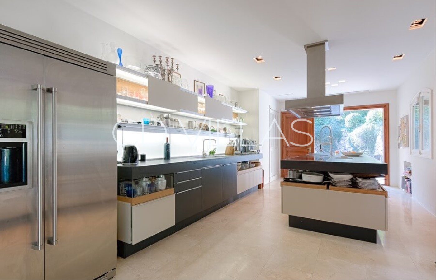 Kitchen - Fully equipped with large American style refrigerator, steam oven, conventional oven, wine cooler, double sink, microwave/oven, TV, Nespresso, induction hob.
