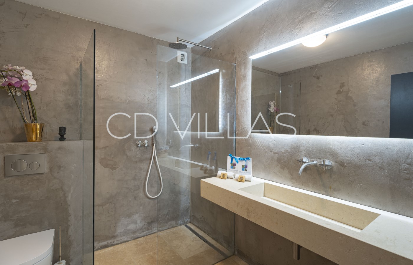 Four of the 5 bedrooms are located on the main ground level, 3 of which have ensuite bathroom facilities and all have a sea view and direct access to the garden area.