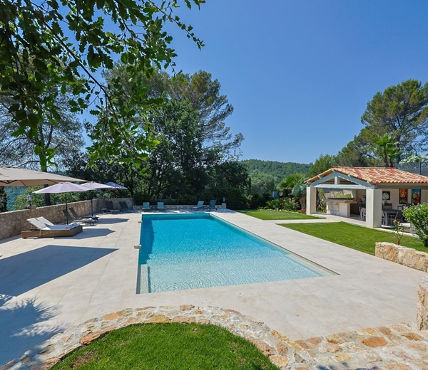 A lovely traditional family villa with 7 air-conditioned bedrooms, and a large private pool (which can be heated) as well as a private tennis court. It is ideally located within a five minute drive of the pretty medieval village of Valbonne and just 20 minutes to Cannes and the beaches.