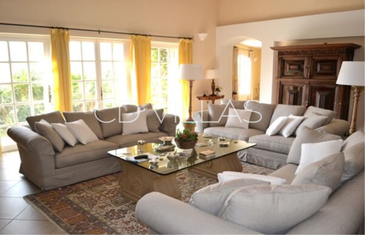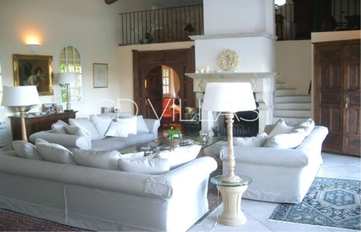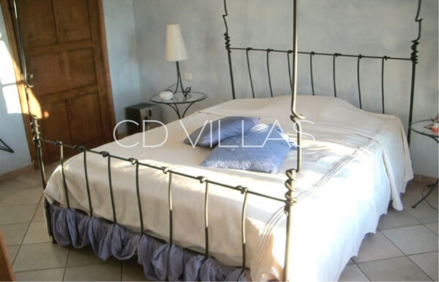 The villa is light and spacious, with views over the village and hills. The living room has high ceilings and an original Louis XIII fireplace from a French chateau, stone floor tiles, antique furniture, and an open dining room. All four double bedrooms have en suite bathrooms, two bedrooms are located on the first floor and two on the garden level. All rooms have reversible air-conditioning.