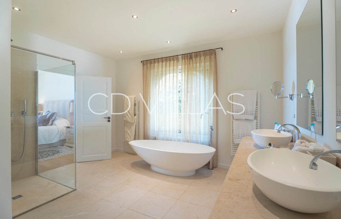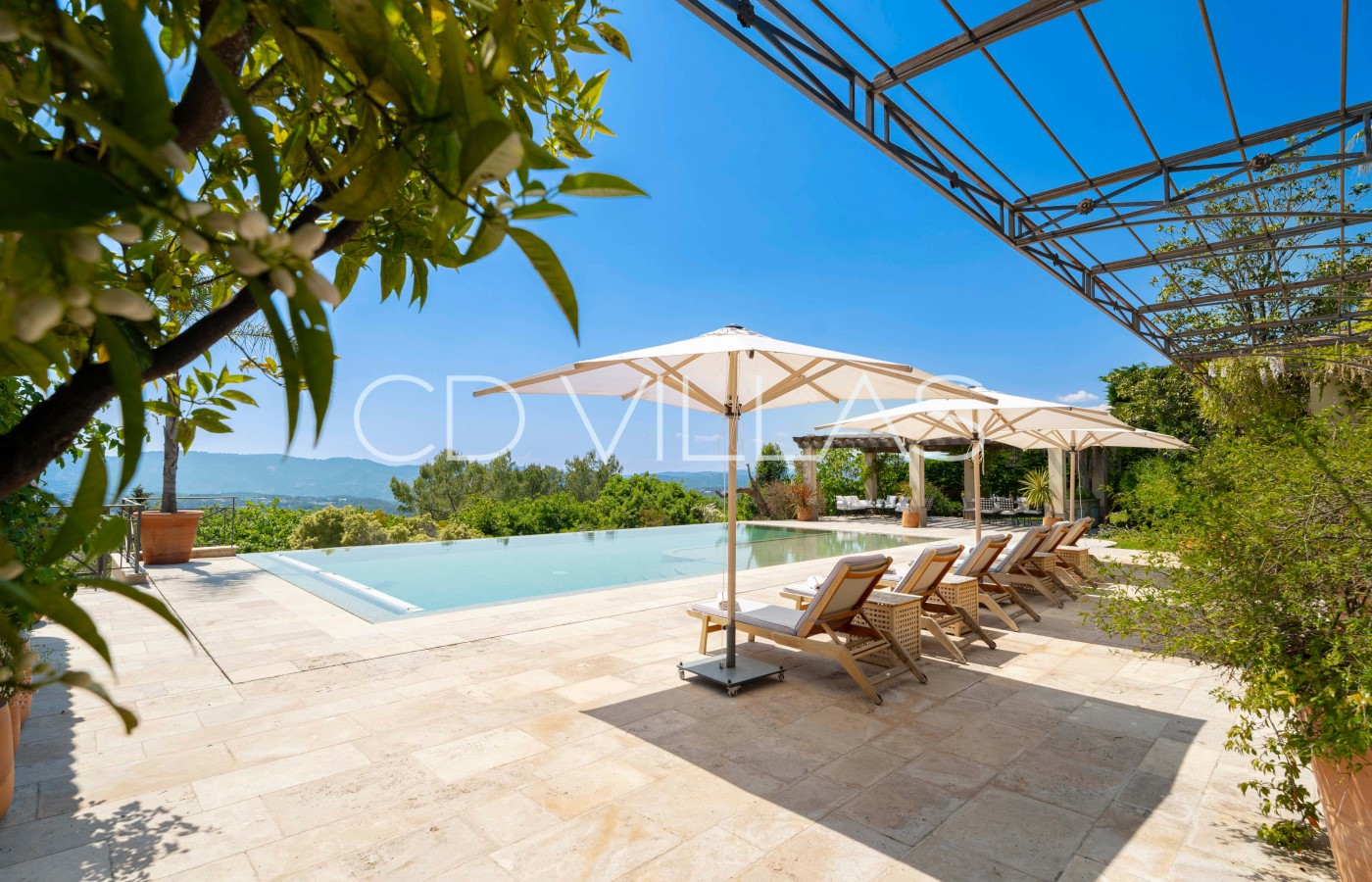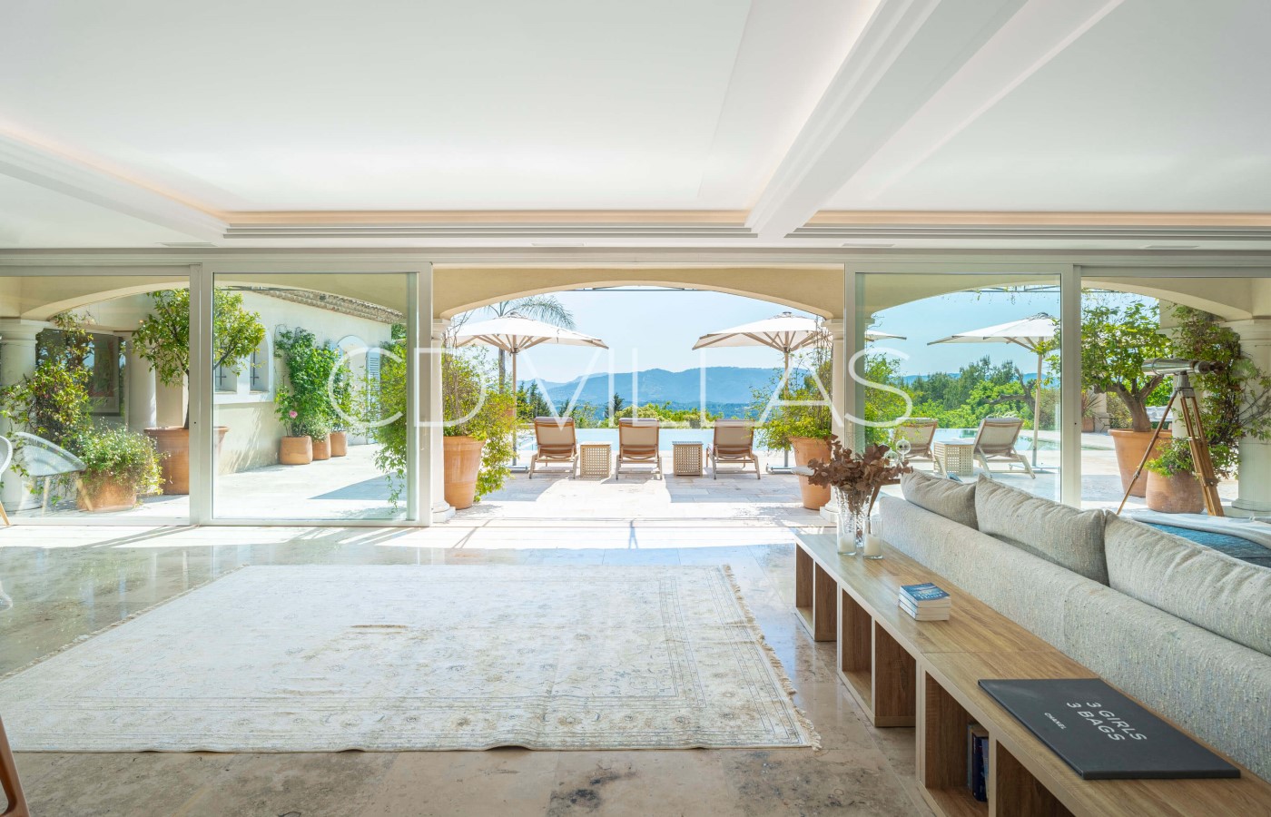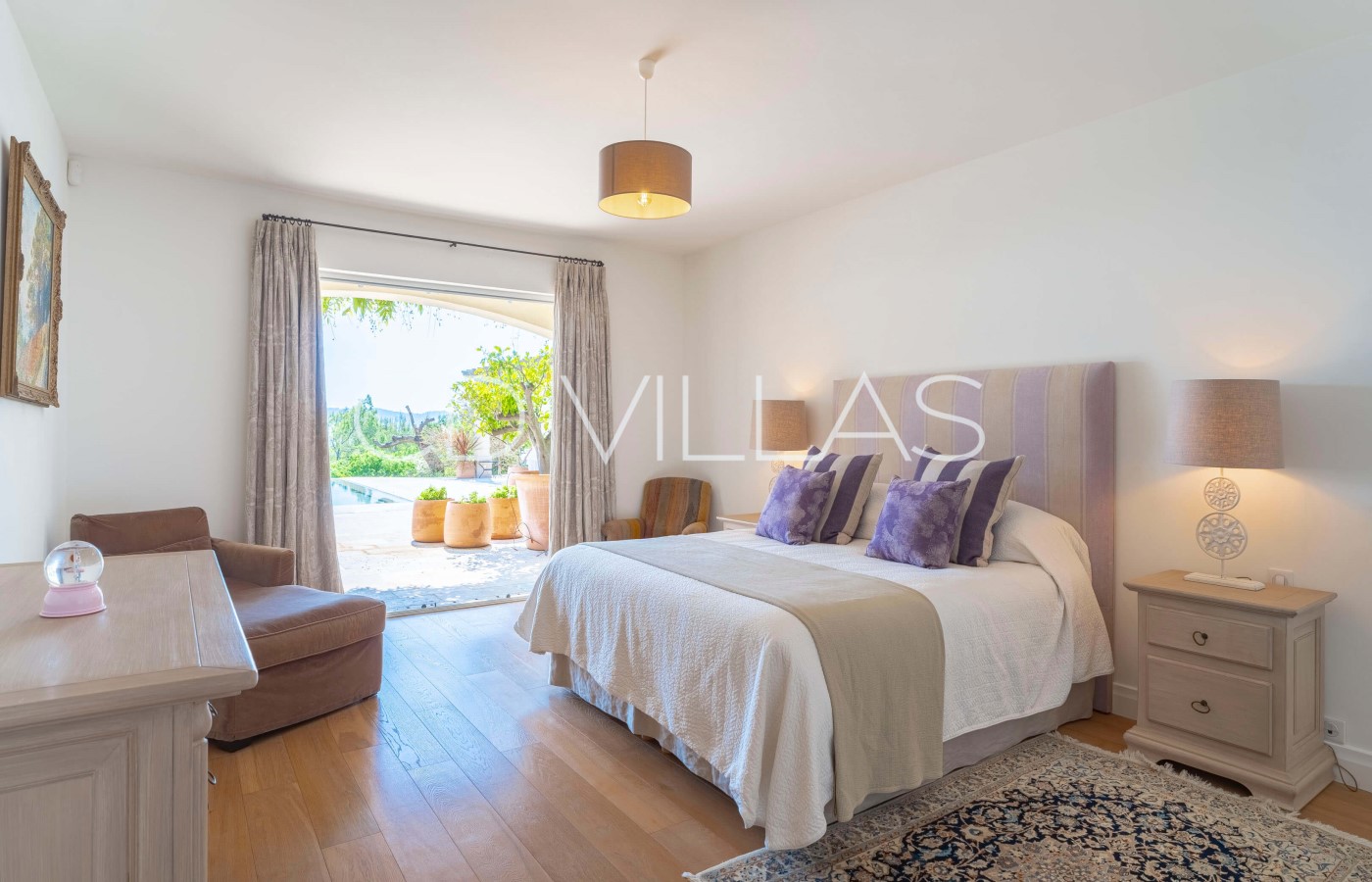 This impressive property has undergone major renovations and has been designed and decorated with great taste and elegance. The property consists of roughly 400m2 of indoor living space which is spread over 2 floors with 6 bedrooms and 6 bathrooms. The villa is fully air conditioned. Guests arrive on the ground floor directly into a large open plan living room/dining room/kitchen area. Large ceiling windows are a major feature in the main living area which give access to a gorgeous terrace area, overlooking the beautiful pool.