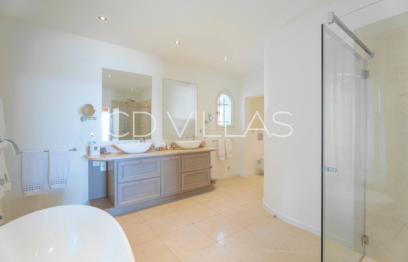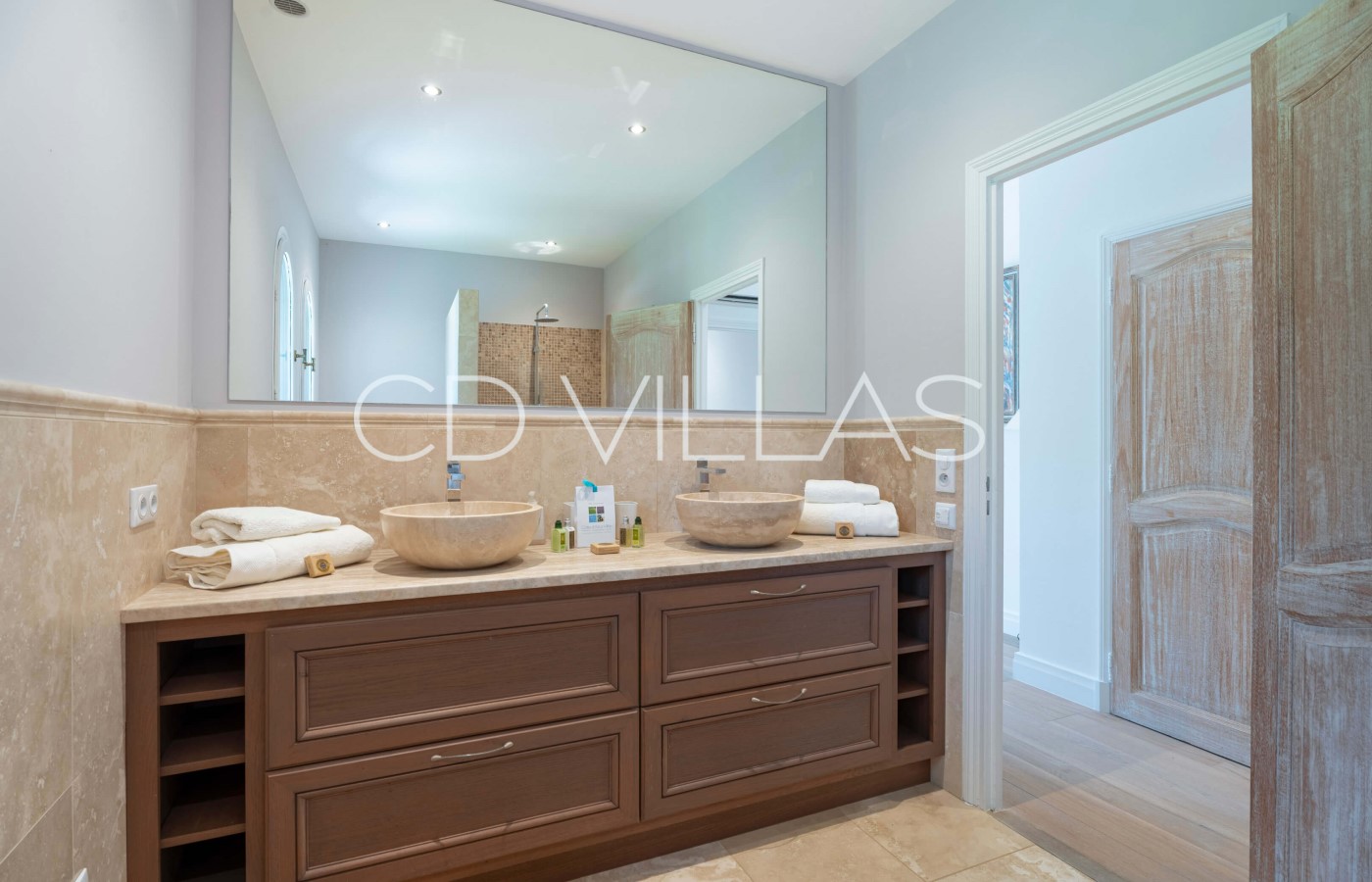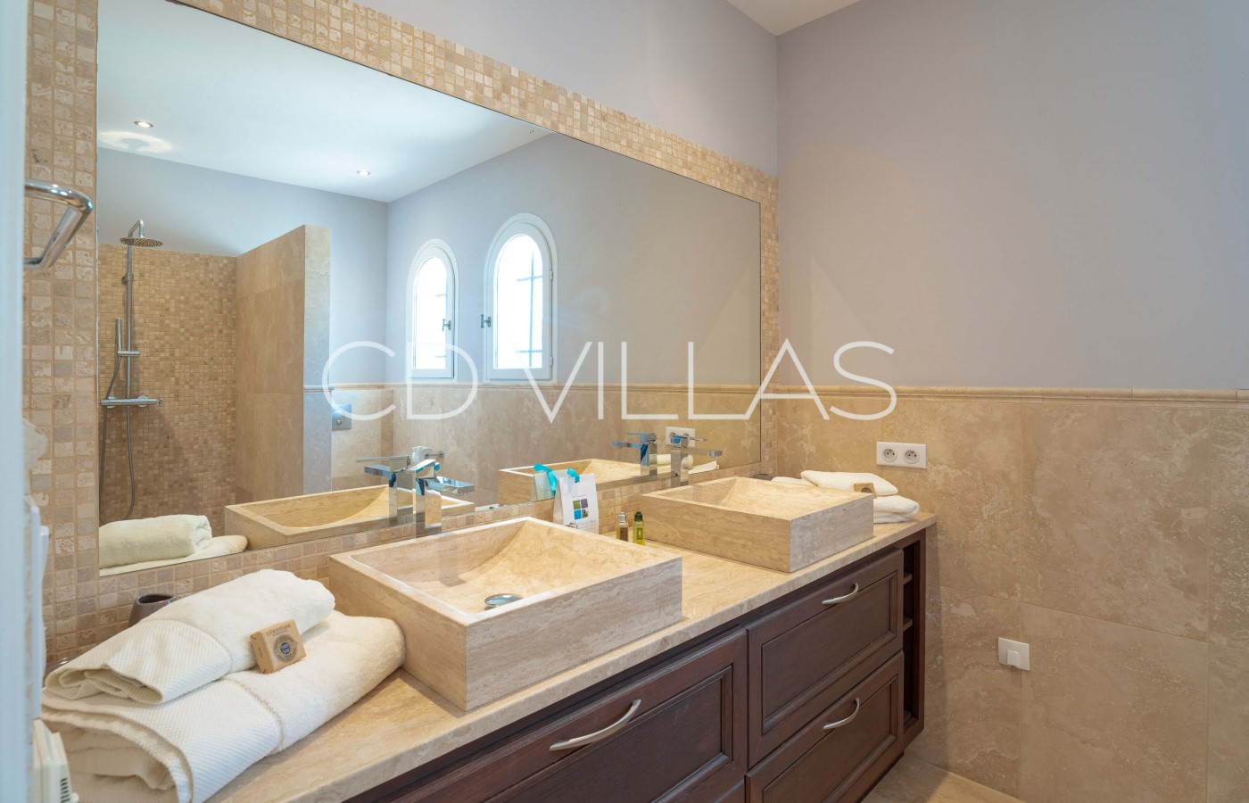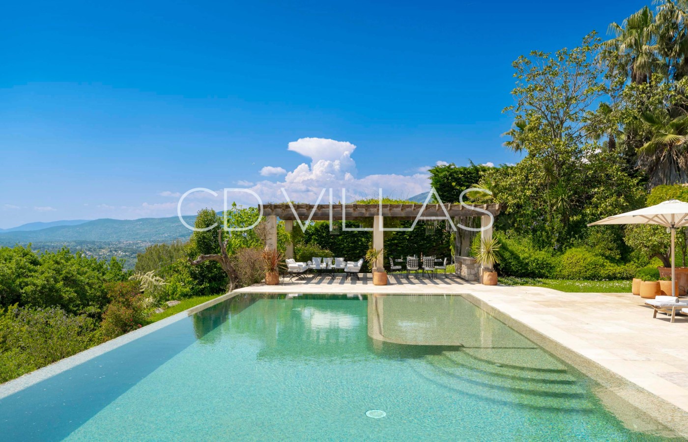 This impressive property has undergone major renovations and has been designed and decorated with great taste and elegance. The property consists of roughly 400m2 of indoor living space which is spread over 2 floors with 6 bedrooms and 6 bathrooms. The villa is fully air conditioned. Guests arrive on the ground floor directly into a large open plan living room/dining room/kitchen area. Large ceiling windows are a major feature in the main living area which give access to a gorgeous terrace area, overlooking the beautiful pool.