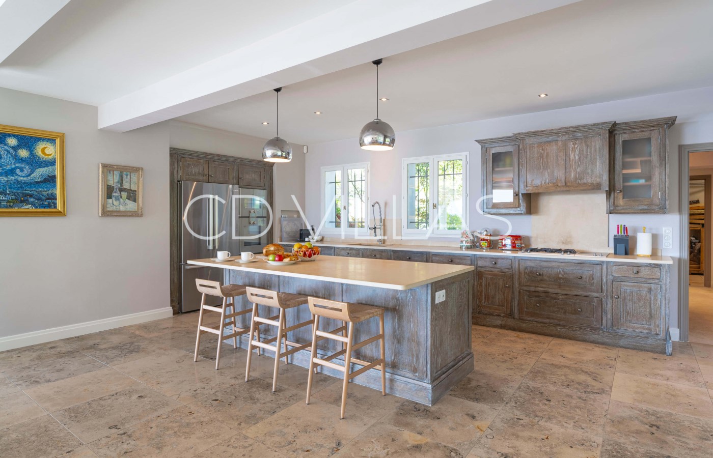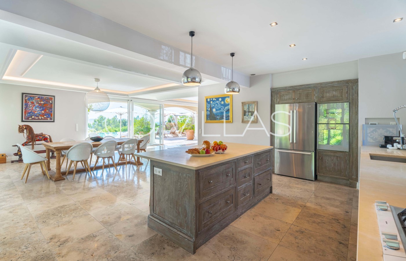 Kitchen - Open plan kitchen. Fully equipped with US fridge, Nespresso coffee machine, oven, microwave plus well equipped back kitchen.