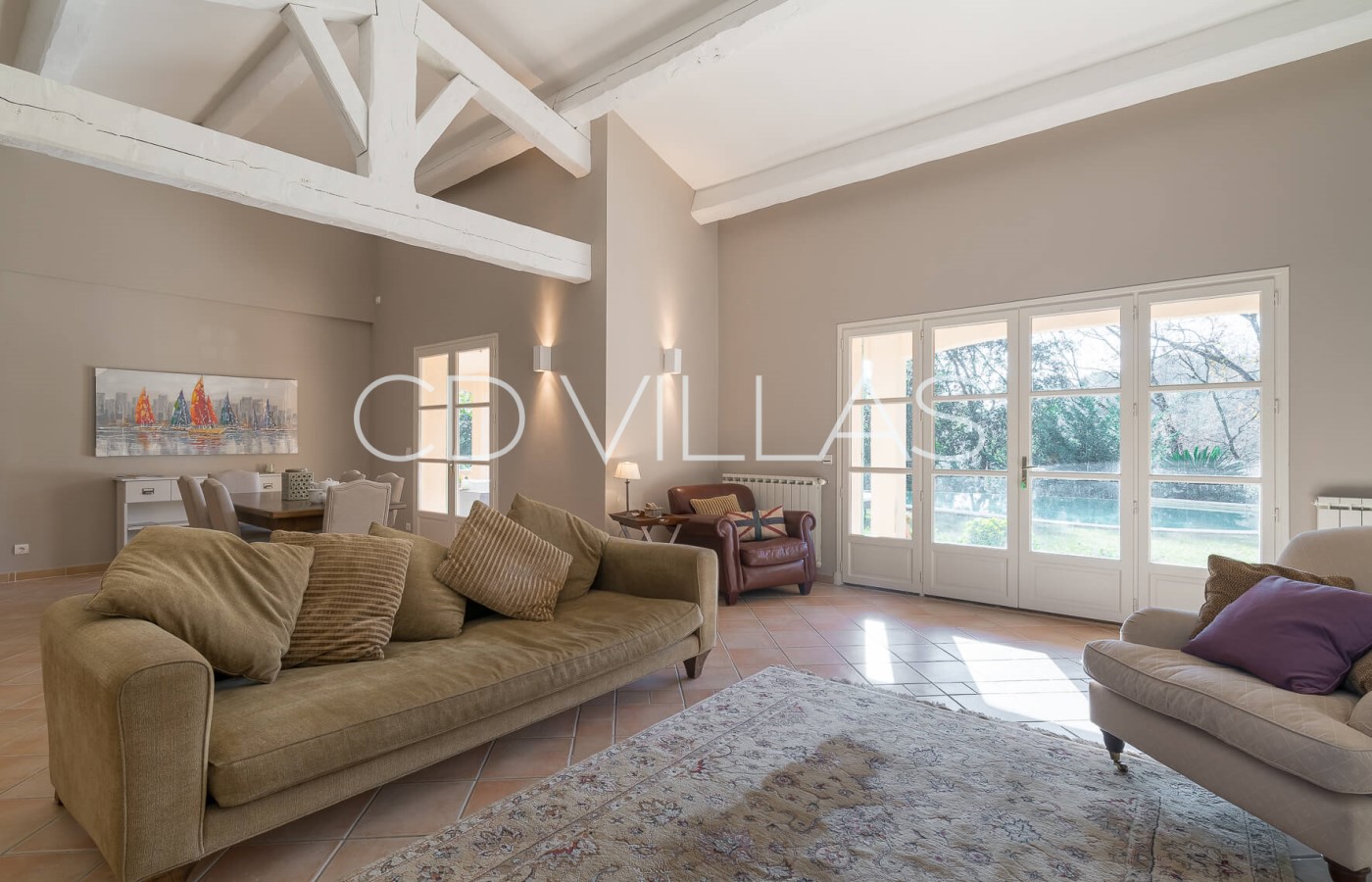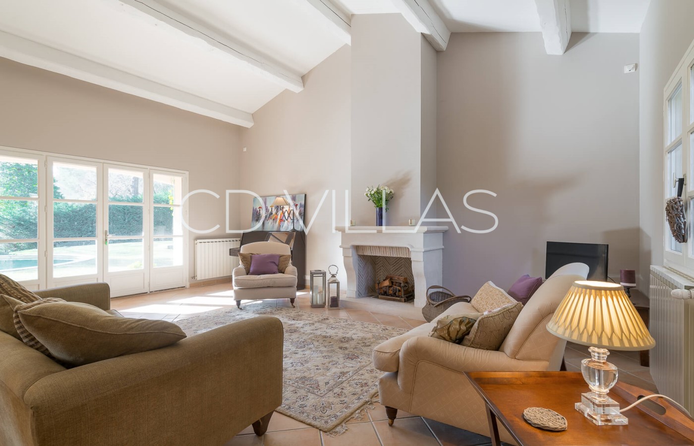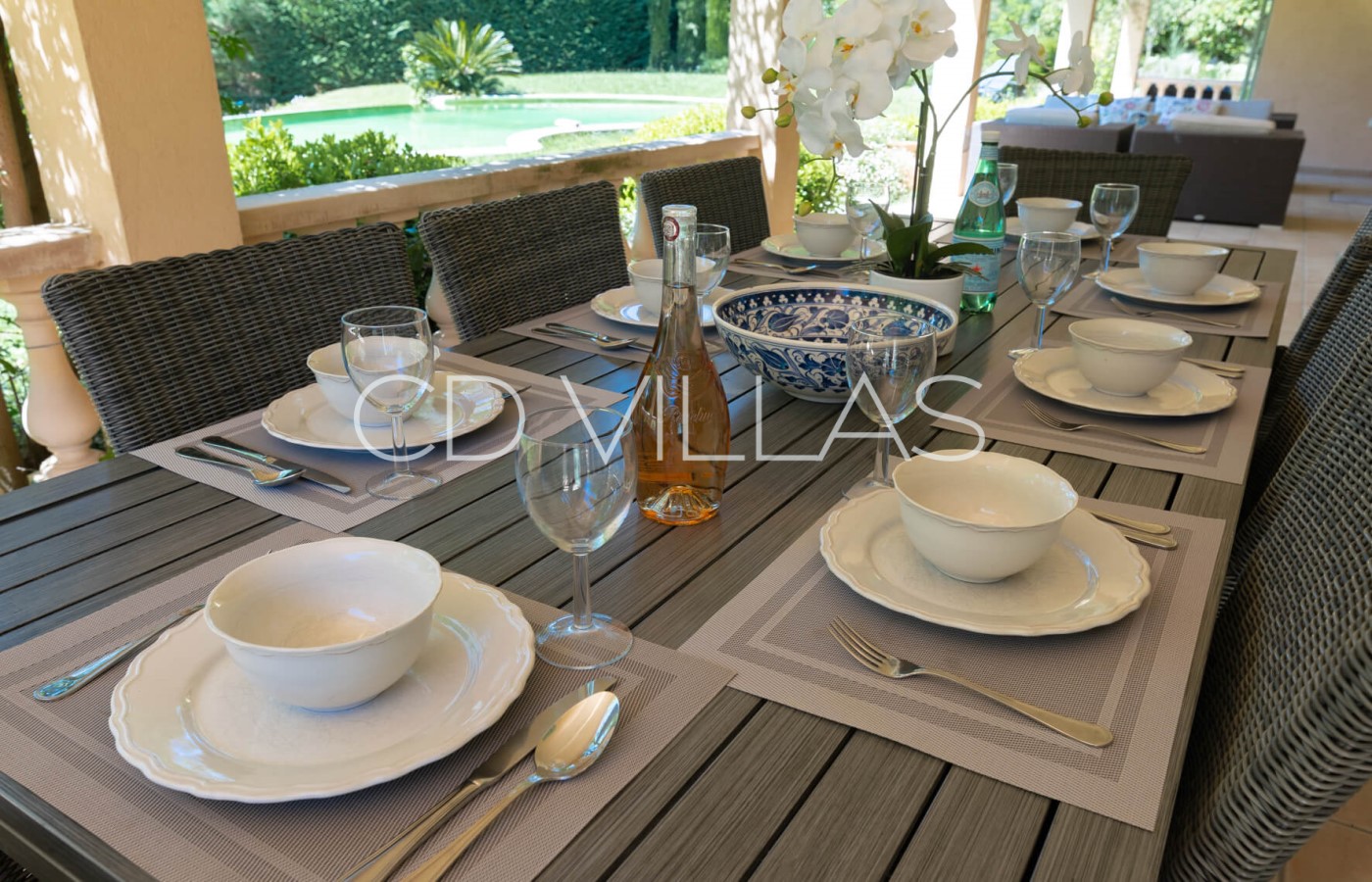 The villa is set within a mature Mediterranean garden with a large flat lawned area and free form saline infinity pool. There is also a boules court.
