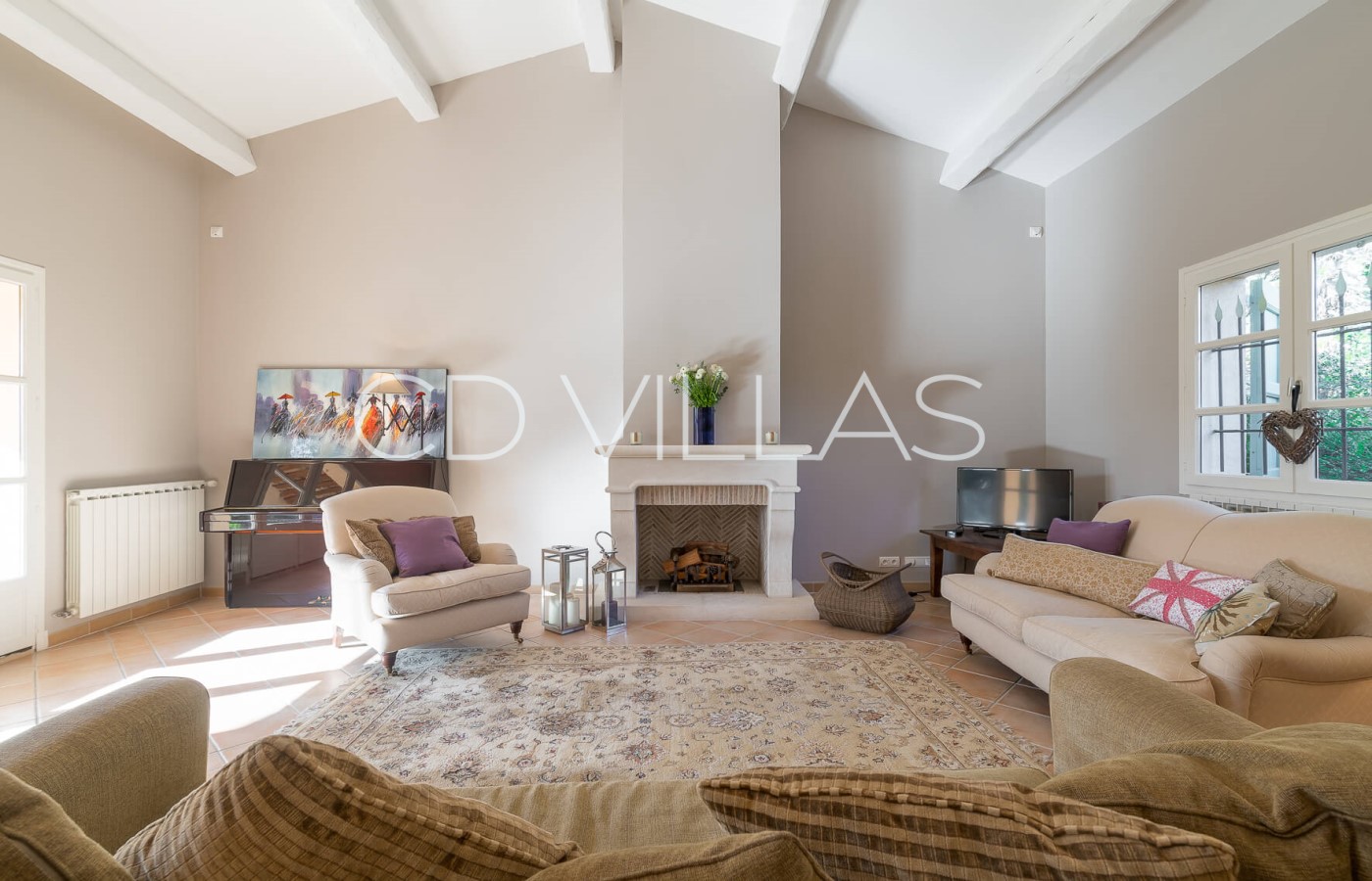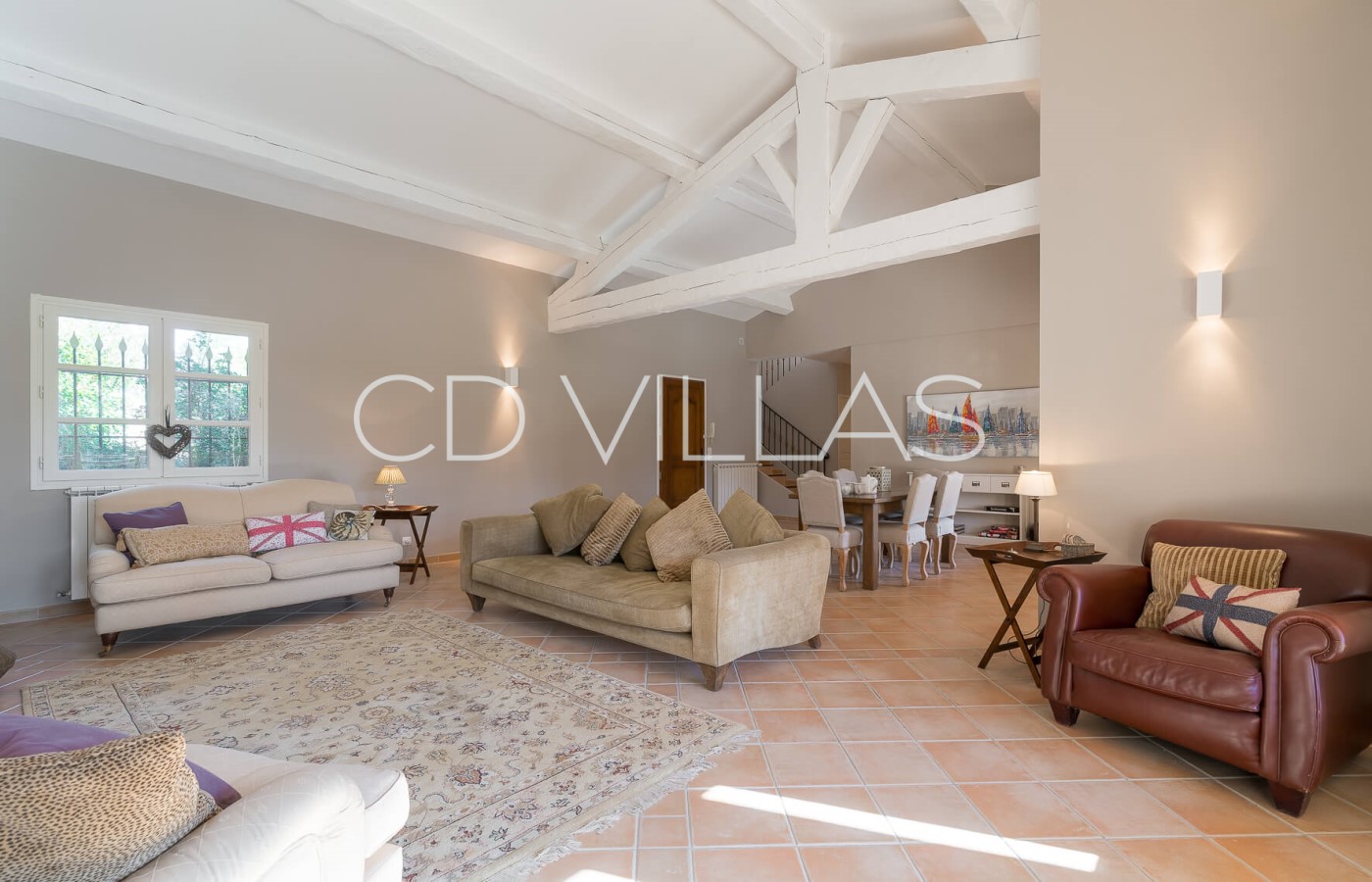 On the ground floor you will find a spacious and comfy dining and living area with fireplace, and large French windows opening onto the garden and covered terraces. You will also find a high standard and fully equipped kitchen that also opens onto the garden, and covered BBQ terrace and lounge area.