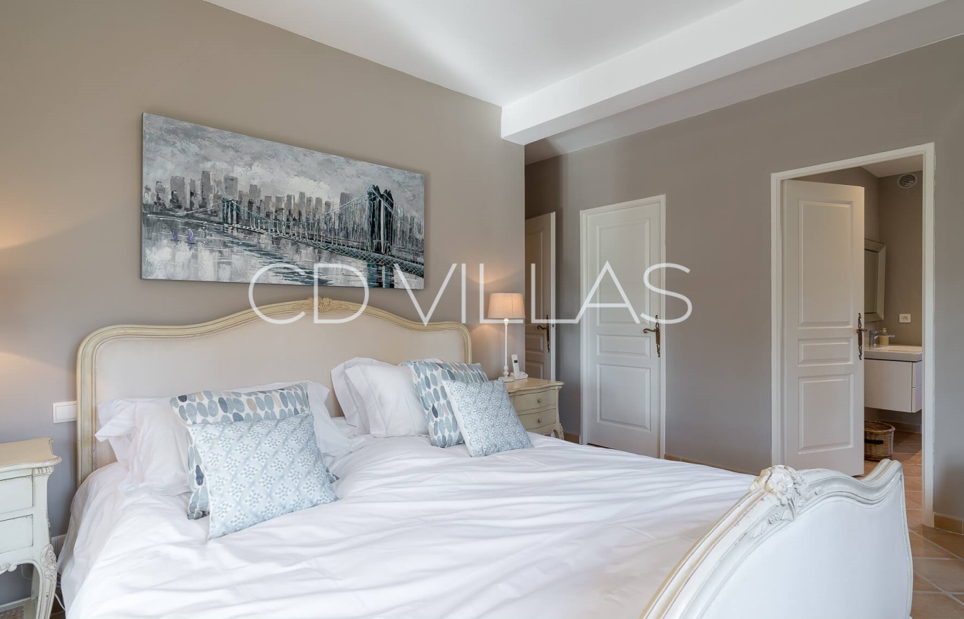 Bedroom 1 - Extra large double bed with ensuite bathroom, equipped with air-conditioning