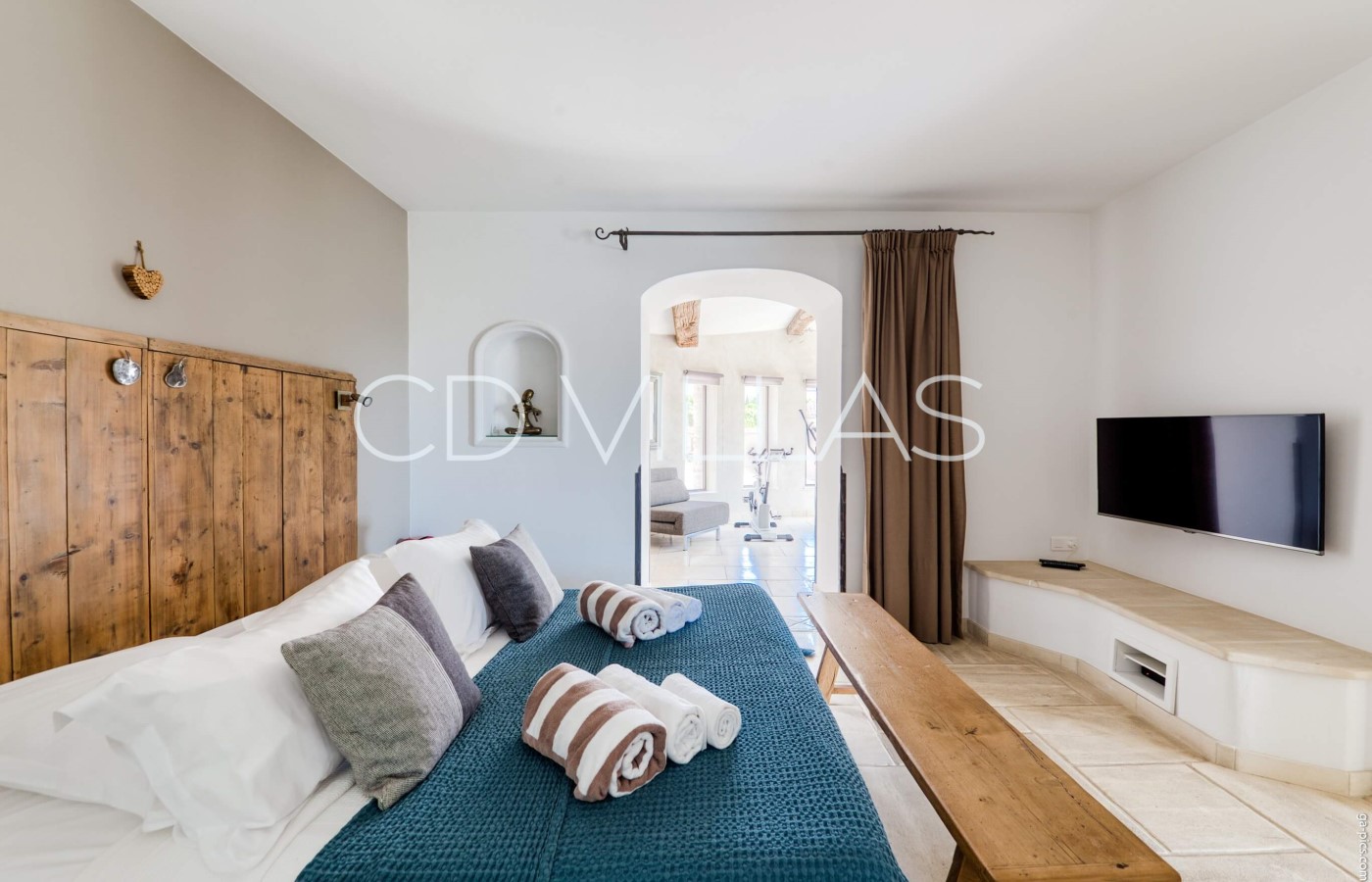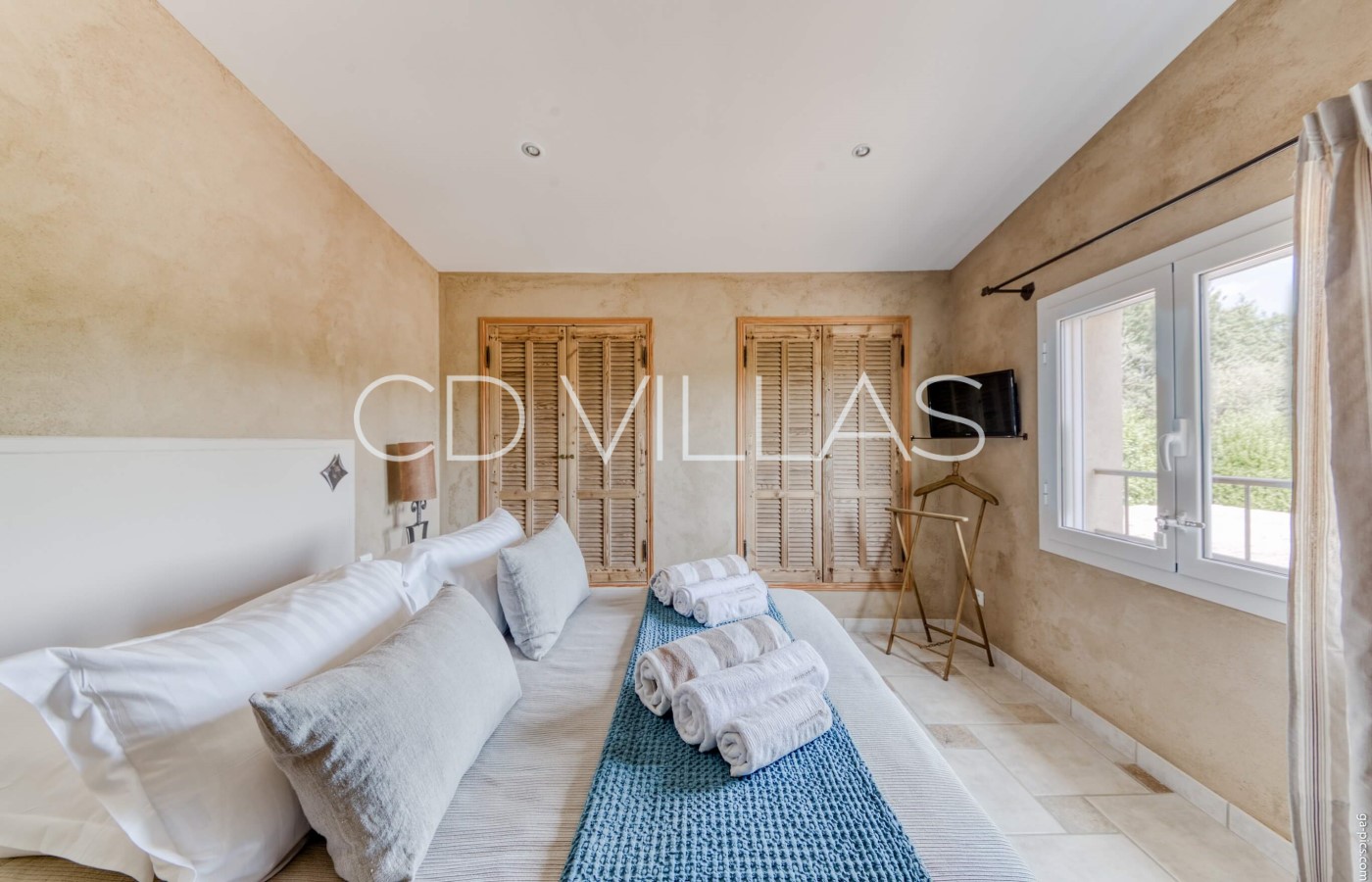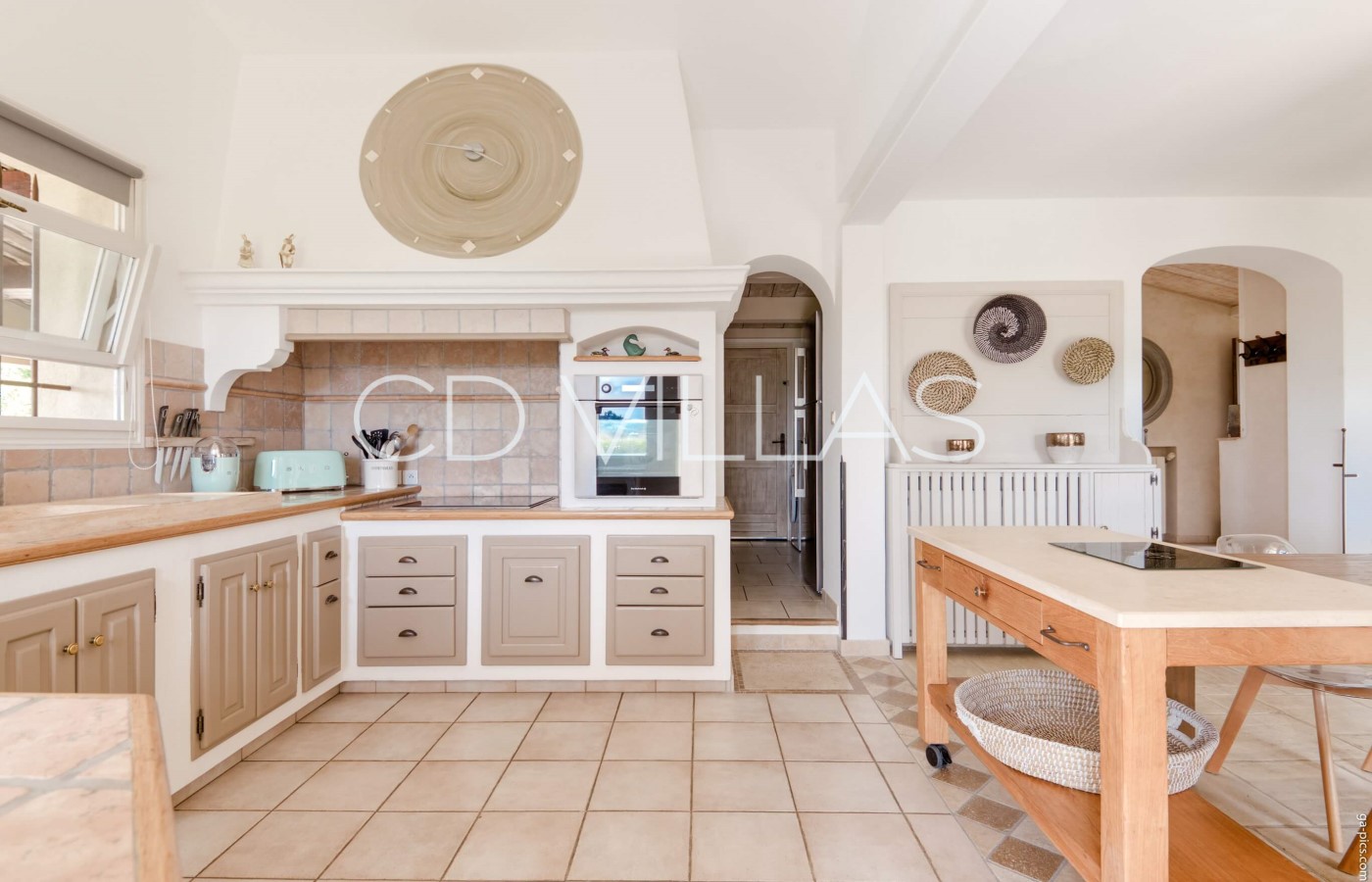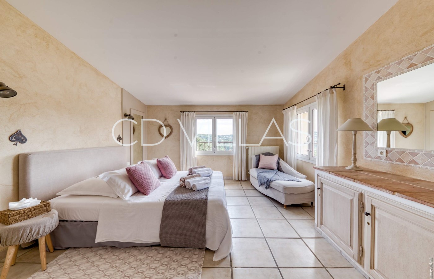 On the entrance level there is a spacious open plan living / dining room opening on to the terrace, a Provencal style kitchen and the master bedroom with en-suite bathroom, home gym and sauna. On this level there is also the dining terrace with BBQ overlooking the gardens and pool.