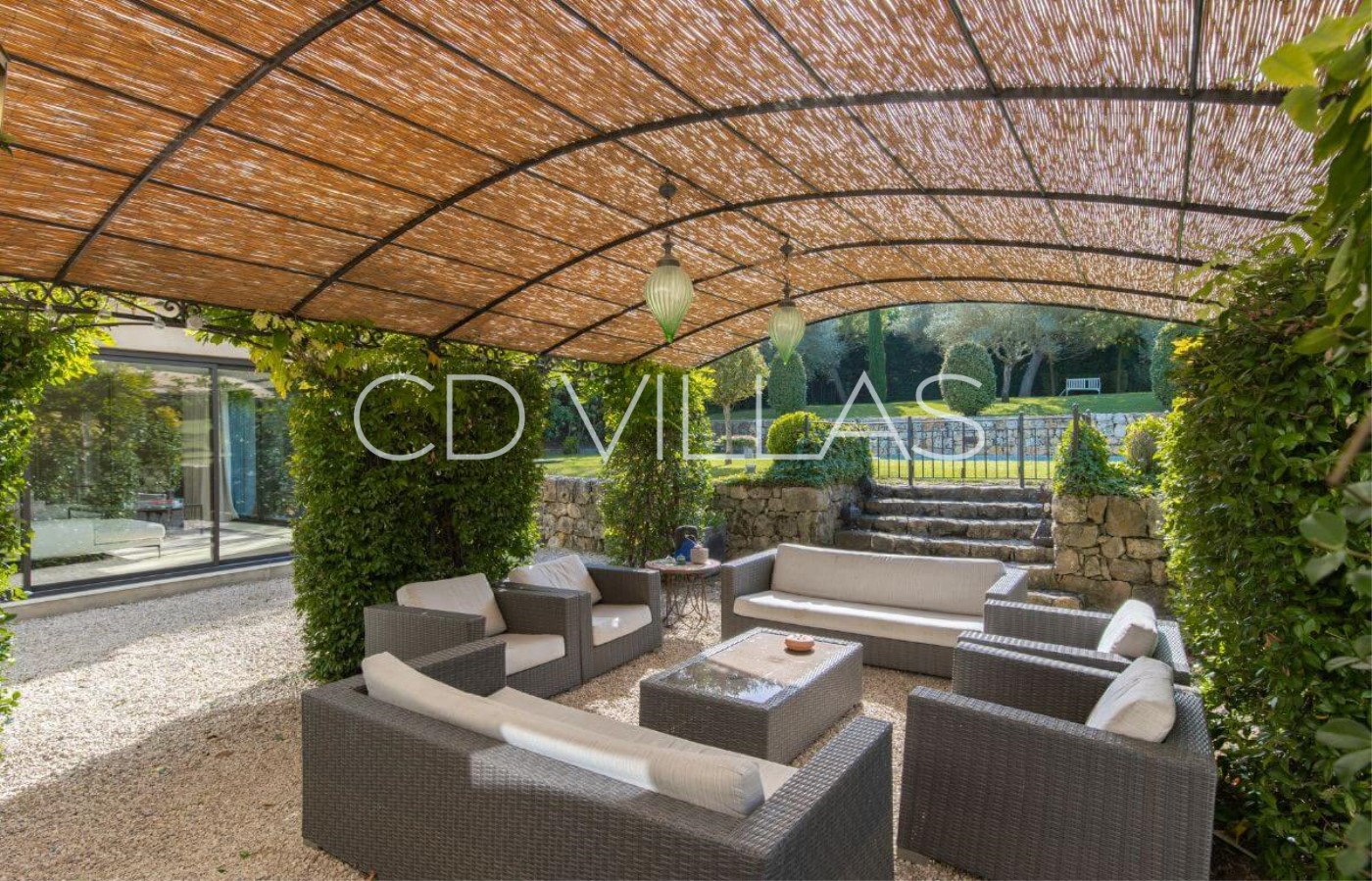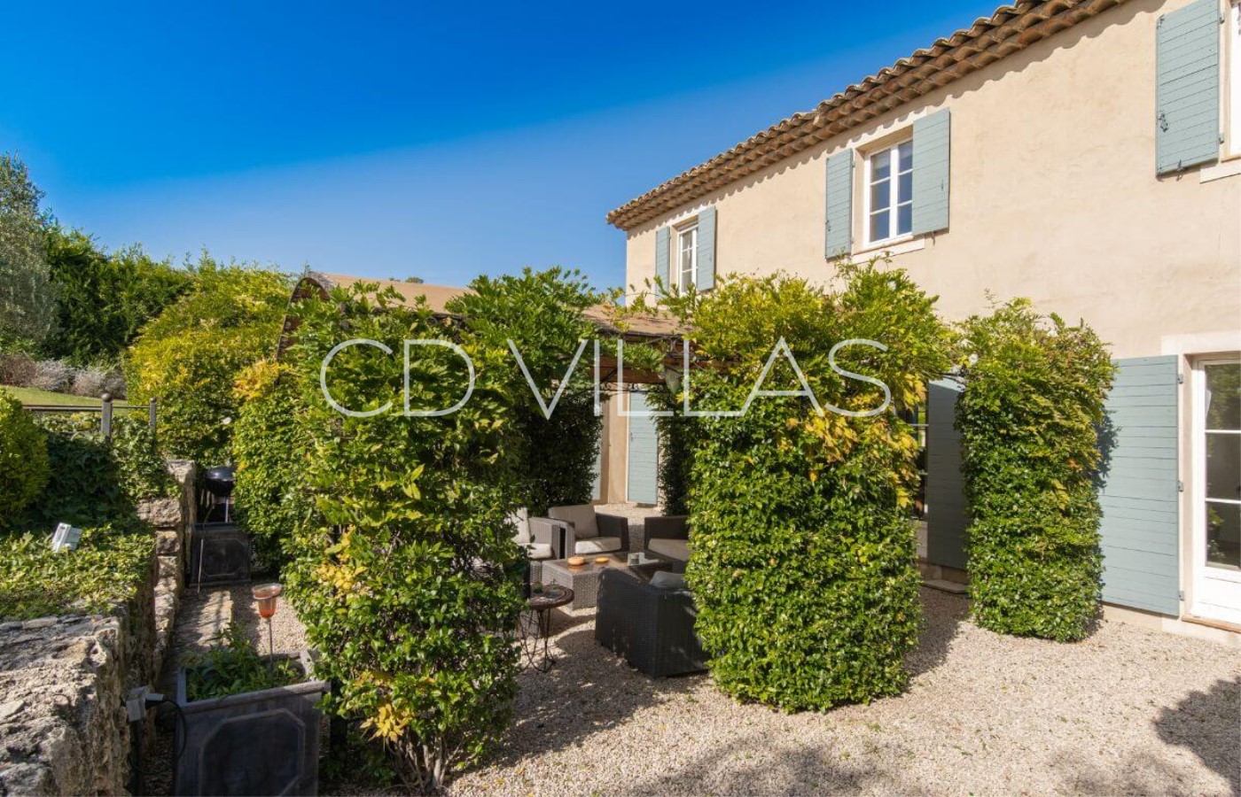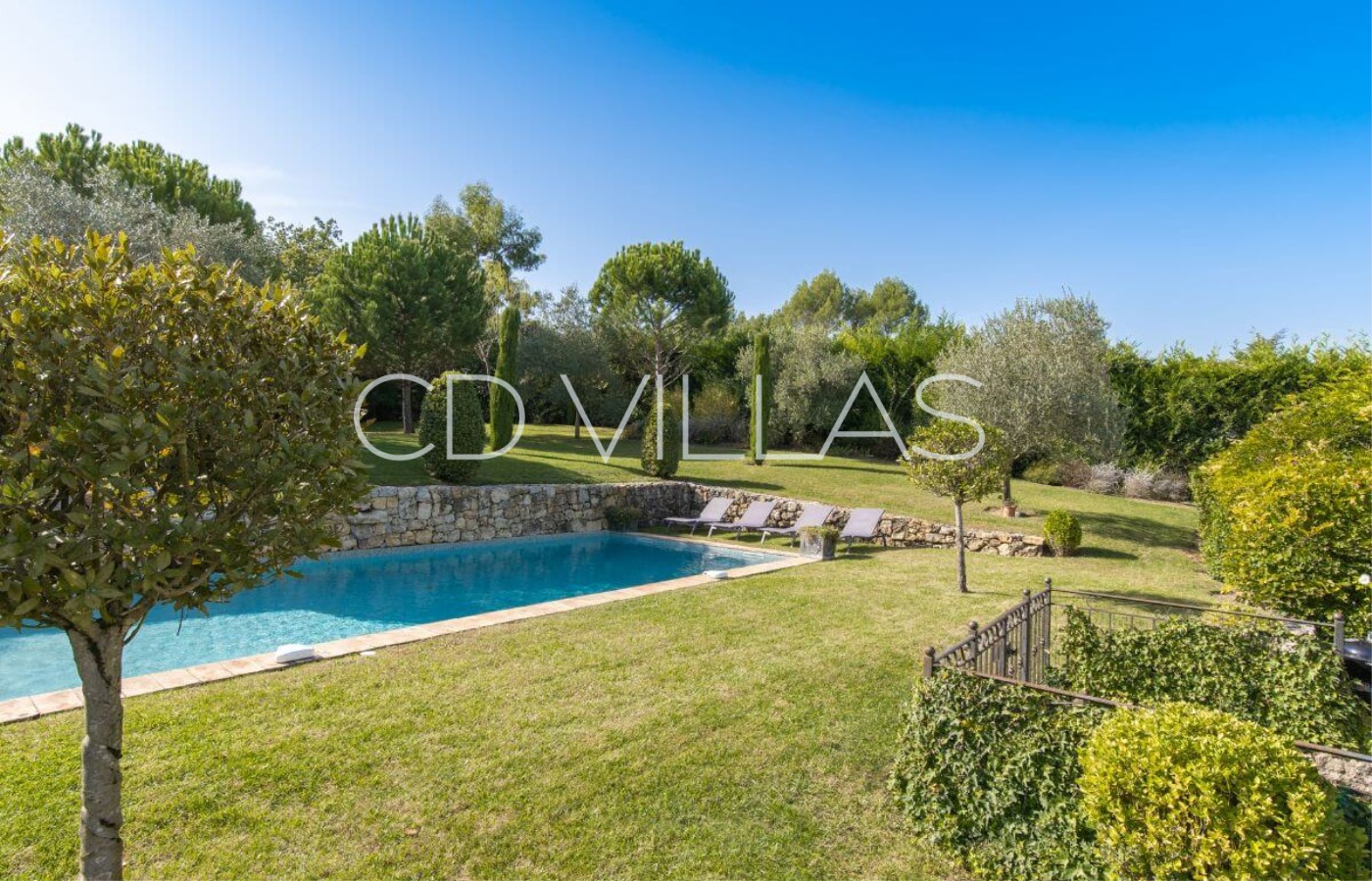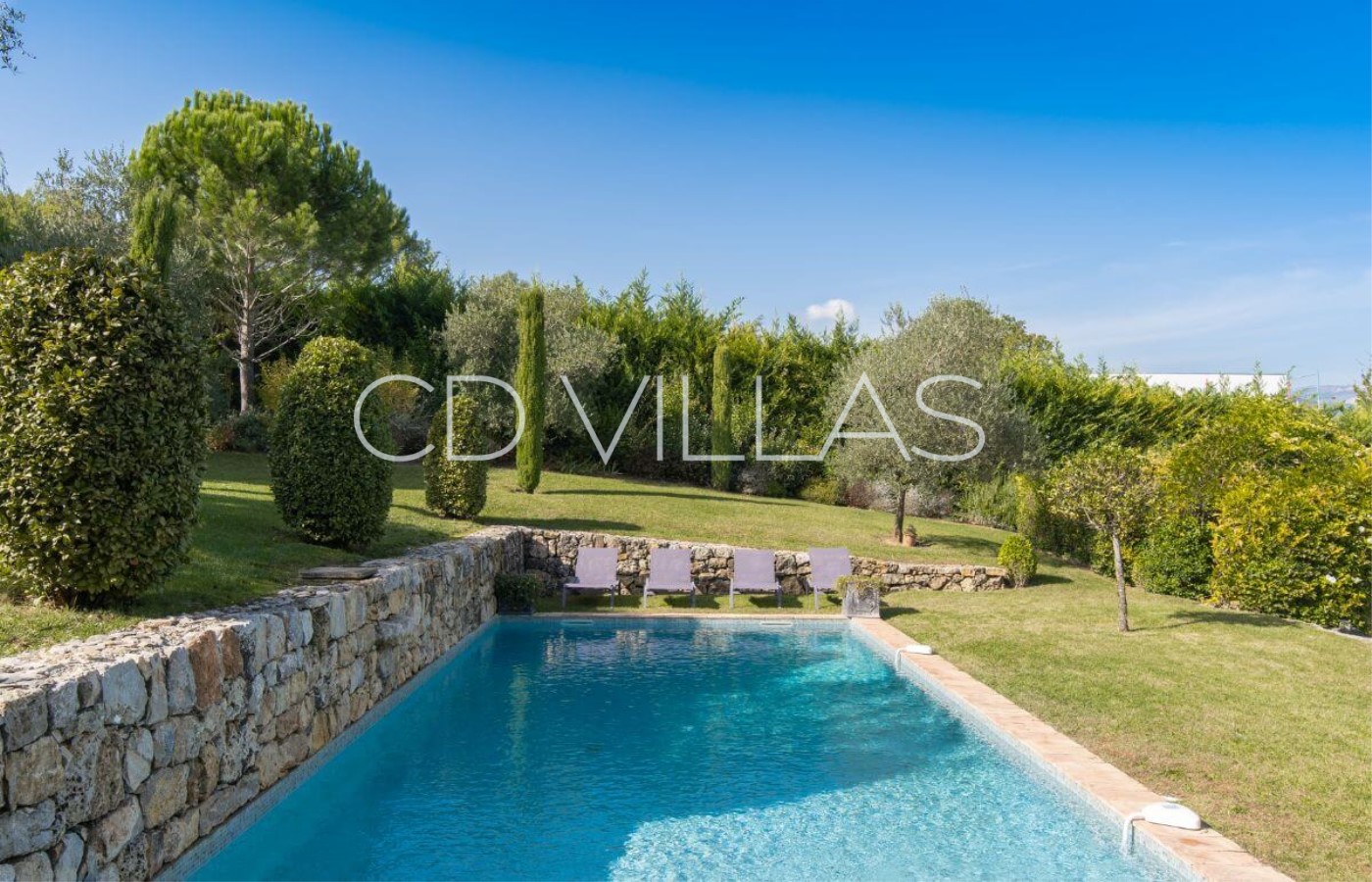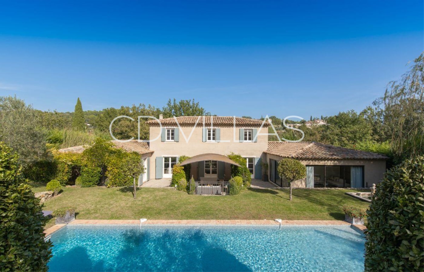 A beautiful 'Bastide' or country house, built in 2007, located in a quiet rural location yet close to local amenities of the picturesque Cote d'Azur villages of Valbonne and Mougins. South facing with a well maintained lawned garden dotted with mature shrubs and trees, the villa has a splendid private pool and fabulous shaded outdoor seating area as well as a separate covered dining table.