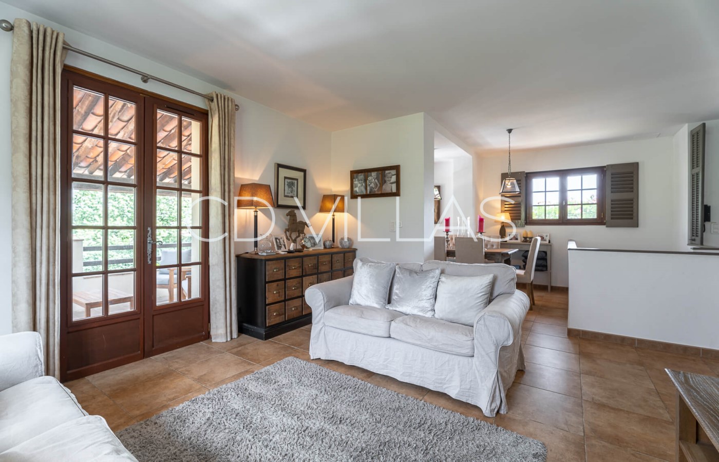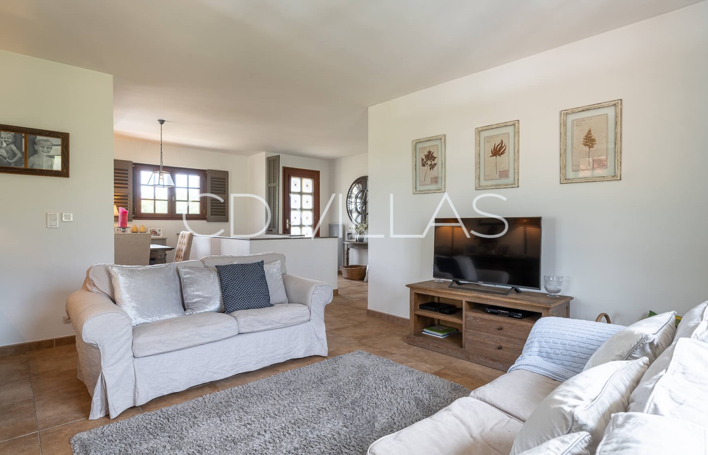 Living / Dining room - Combined living and dining room, opening up to the covered terrace overlooking the pool area. Large television with Apple TV and FreeSat
