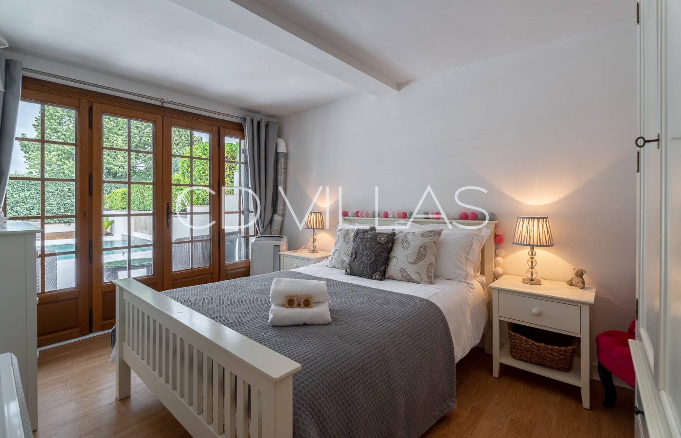 Bedroom 3 - Double bedroom opening up to the pool area. Air-conditioned and shares shower room with bedroom 4