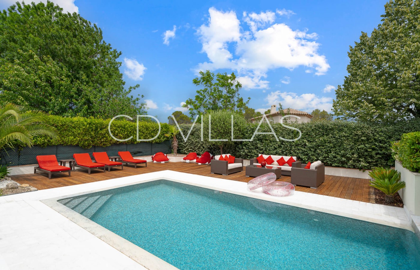 The exteriors offer plenty of space for relaxing and sunbathing, and there are cosy covered areas for dining or simply relaxing by the large private pool. The house is not overlooked and located in a quiet residential neighborhood.