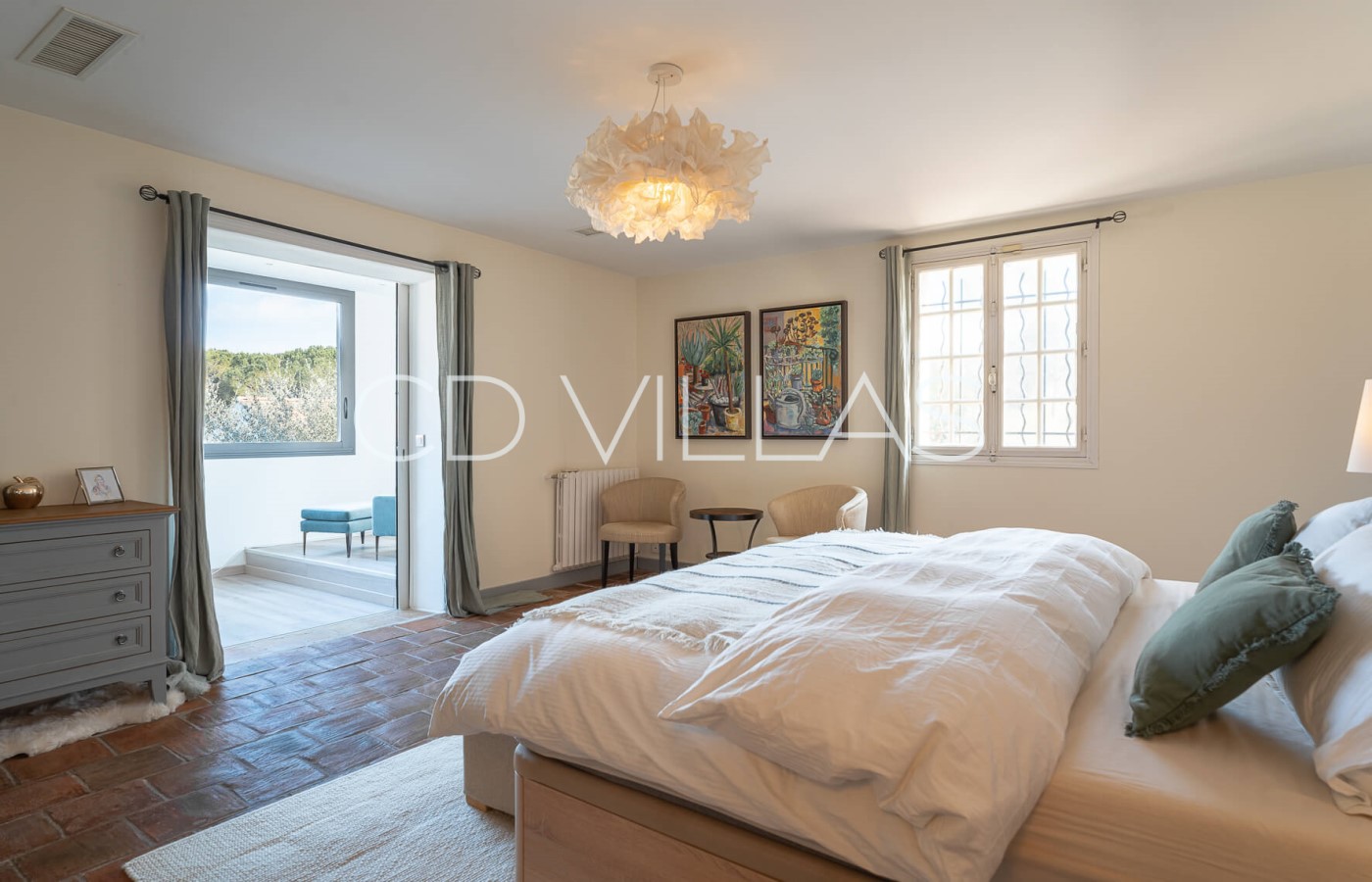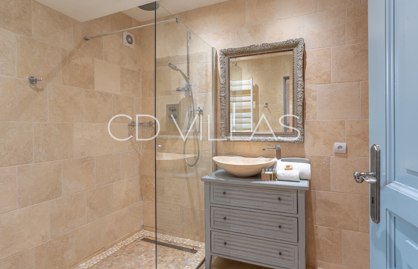 From all main living areas large doors open onto the exteriors where guest will enjoy a large garden, several terraces and a big pool (can be heated on request).