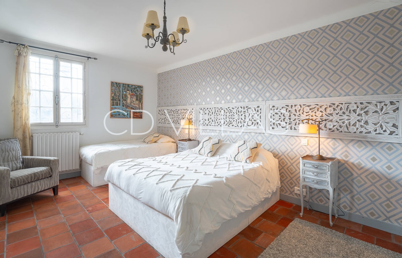 Villa des Palmiers is located in a peaceful residential area of Valbonne. Walkable to a lovely Italian restaurant and a short drive into the village. The house is divided over two floors with one bedroom on the ground floor and the other 5 bedrooms on the first floor. The house is fully air-conditioned and decorated to a high standard.