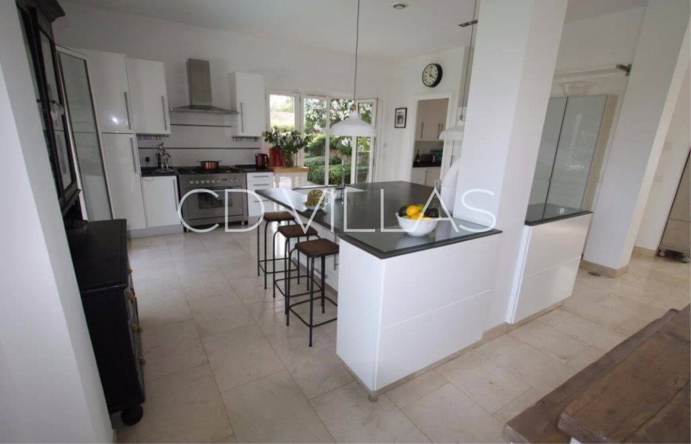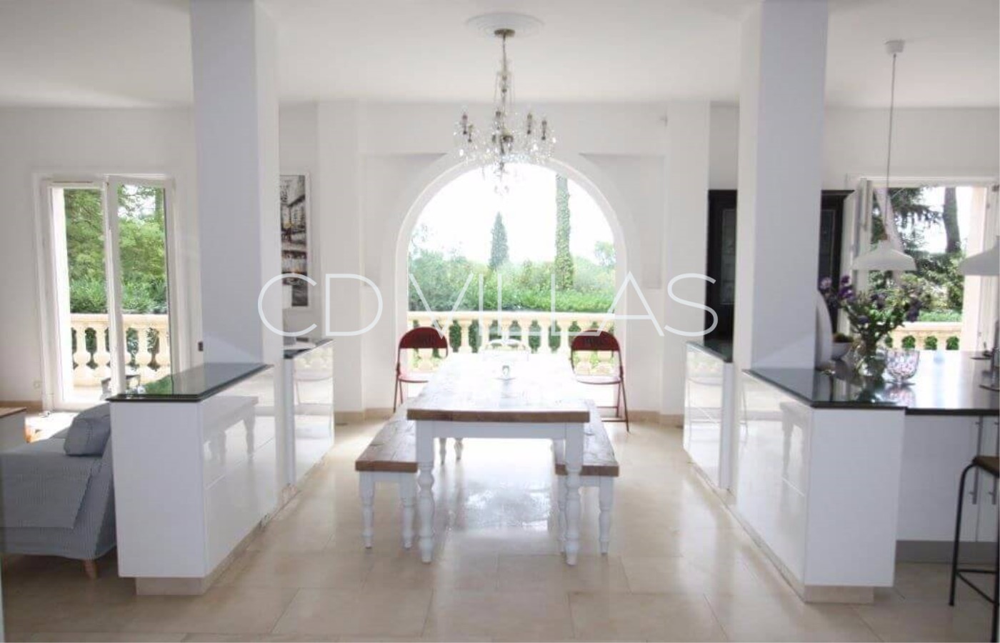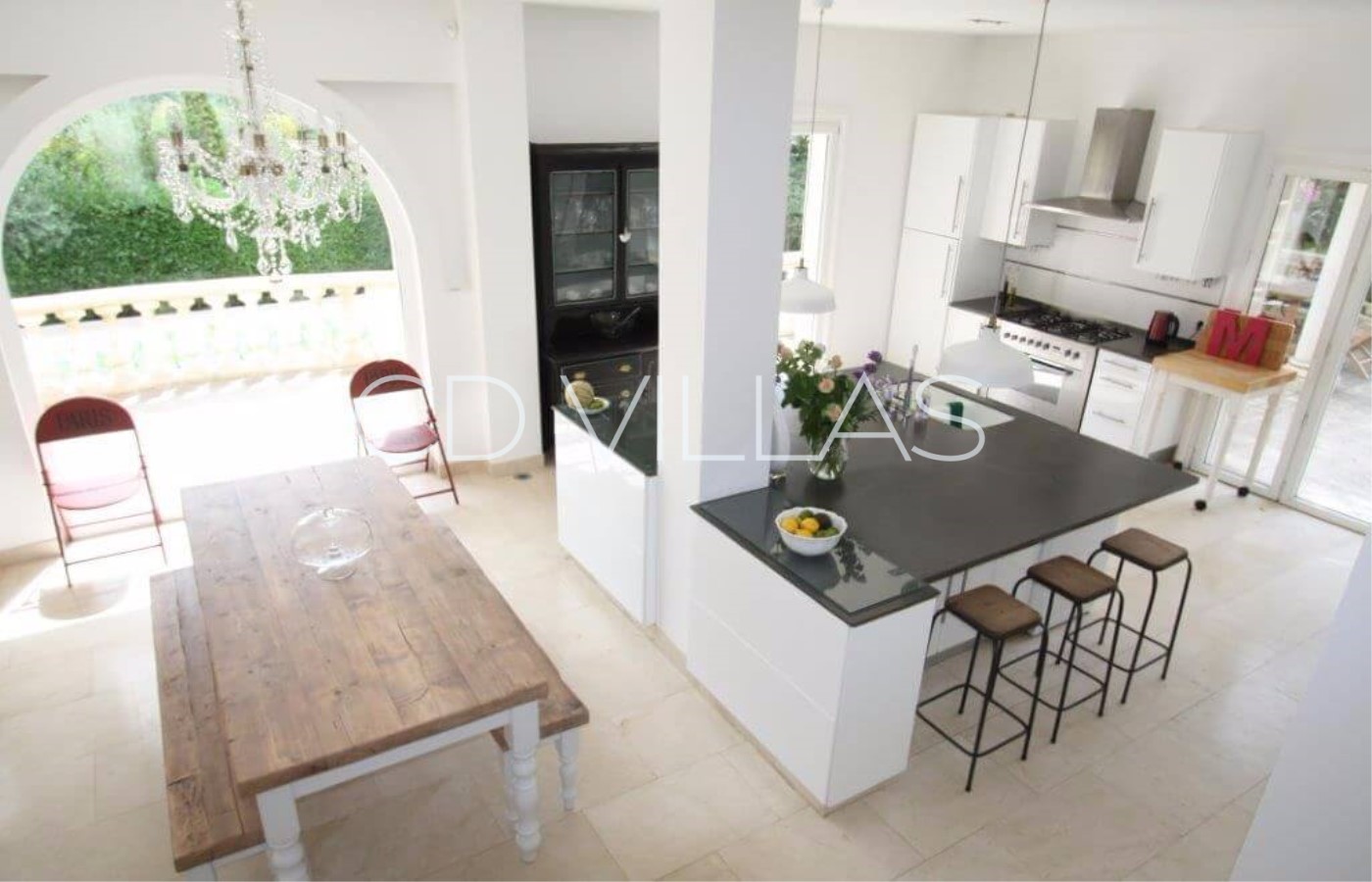 The villa has five air conditioned bedrooms and four bathrooms accomodating up to 10 people - three doubles and two twin bedroom sharing a bathroom, a light and spacious reception with open plan fully equipped kitchen and access to the outside dining terrace. The sitting room has big comfy sofas and satellite TV with UK channels, and French windows leading out to the terrace, garden and pool. Villa Racine is set within a garden with private pool and shaded terraces.