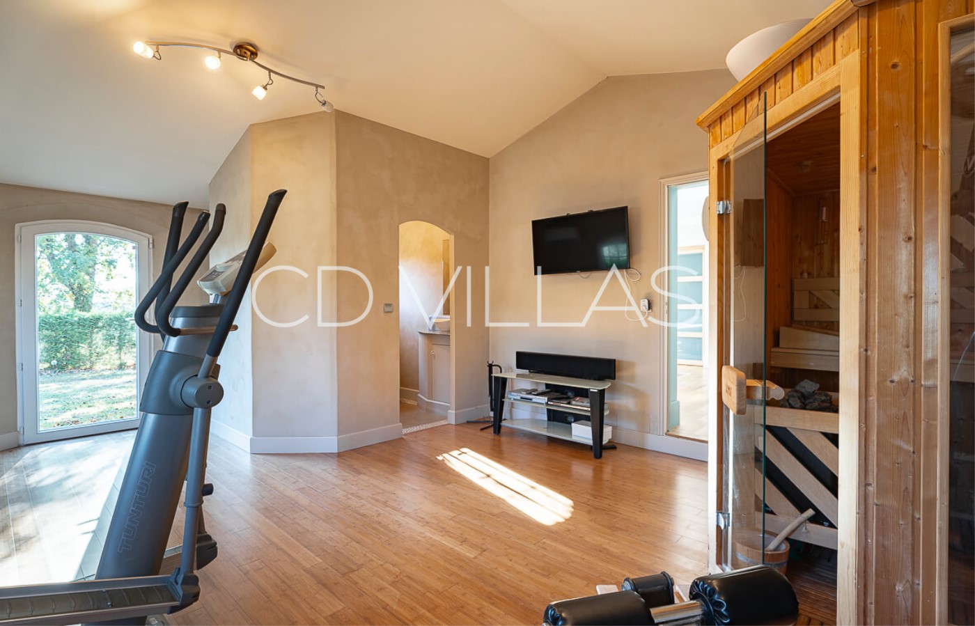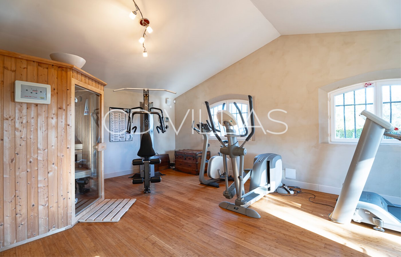 Gym - Connected to the Master bedroom, air-conditioned, containing Sauna, semi-professional Weight training, Running track, Bicycle, Elliptical trainer, shower room with toilet.