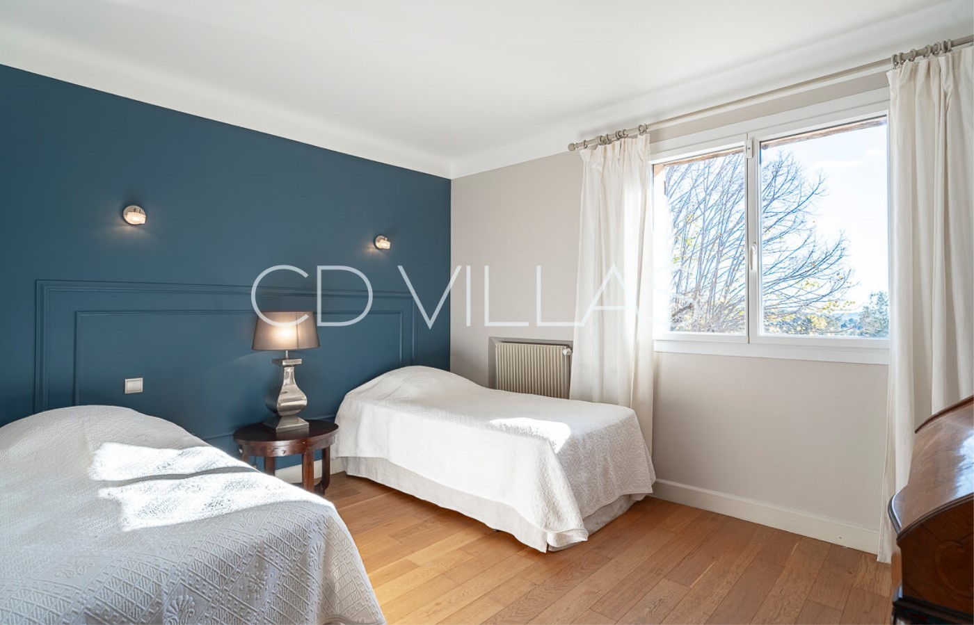 Villa Sunrise is a great family villa located in a quiet residential area just outside the lively village of Valbonne. It's a 15min walk to the historic village of Valbonne. The villa is spacious, recently remodeled and renovated and offers comfortable accommodation for up to 10 guests with its 5 bedrooms, 4 bathrooms and an extensive garden including a magnificent swimming pool, Jacuzzi, pool house, summer kitchen and various outdoor living areas.