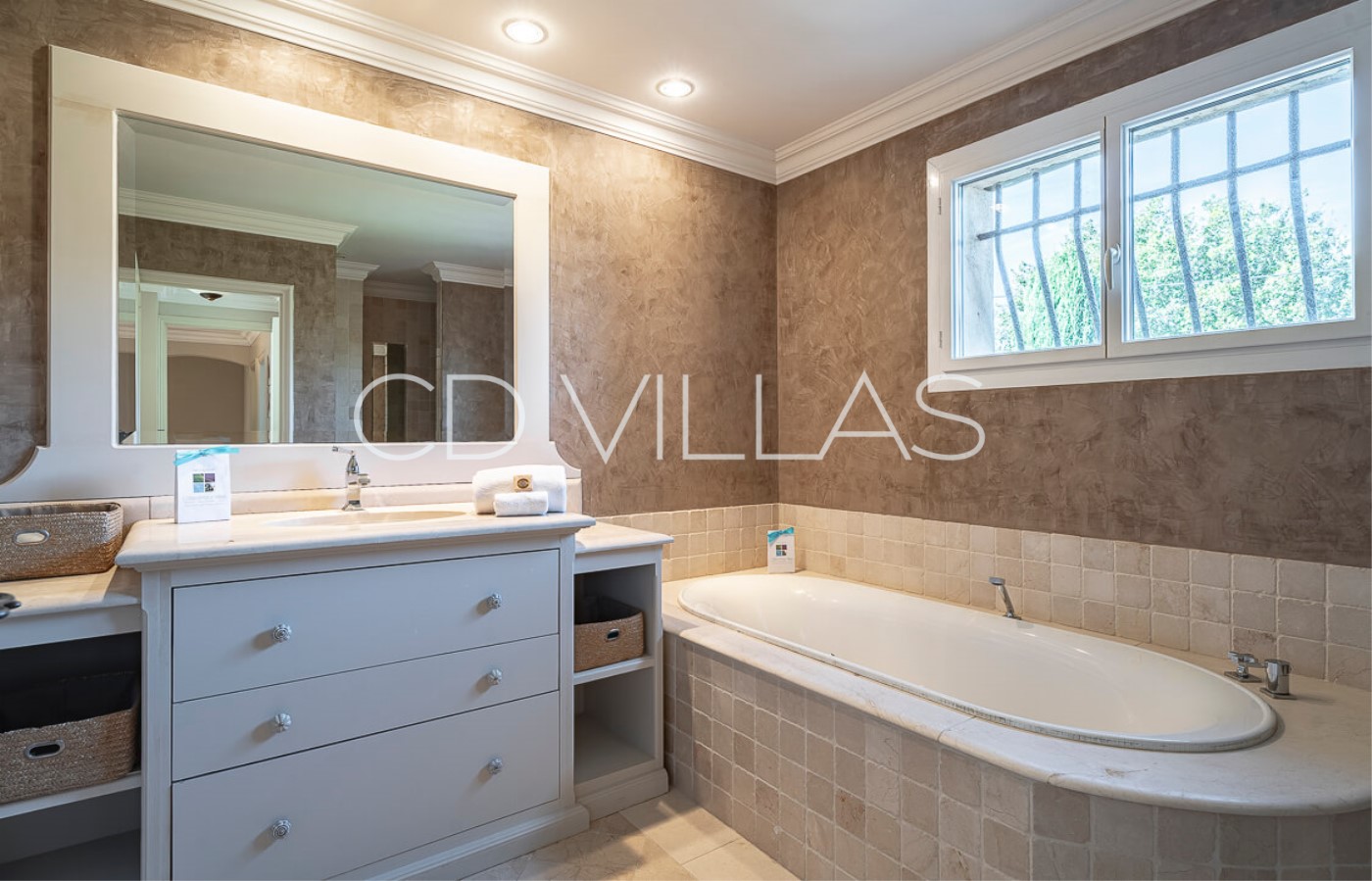 On the first floor a further 3 double bedrooms can be found together with 2 bathrooms. Four of the five bedrooms are equipped with air-conditioning.