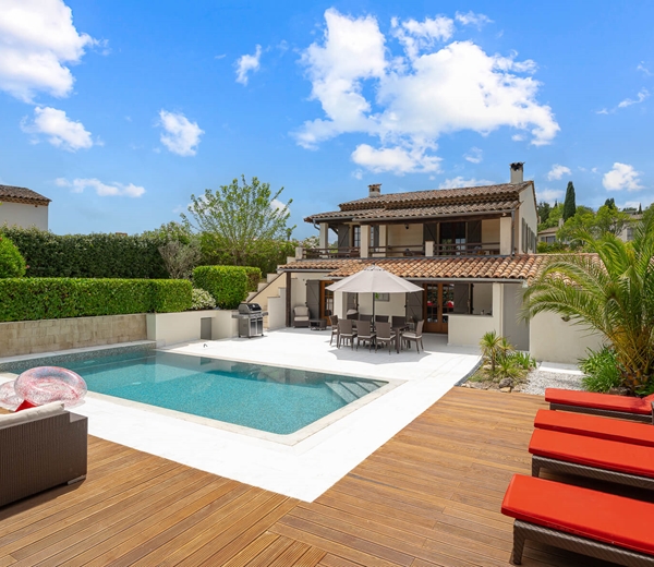 The villa is private, but not isolated and is located at the end of a private cul-de-sac road in a peaceful residential neighborhood, and just a 15 minute walk downhill to the village of Valbonne.